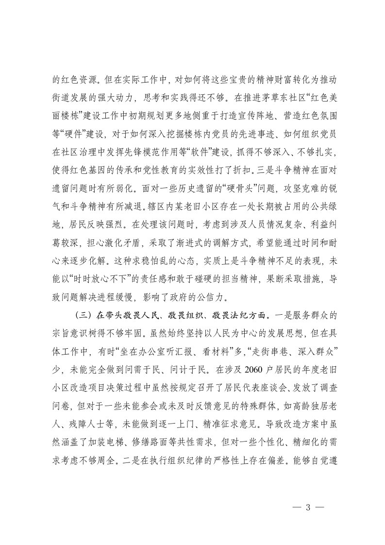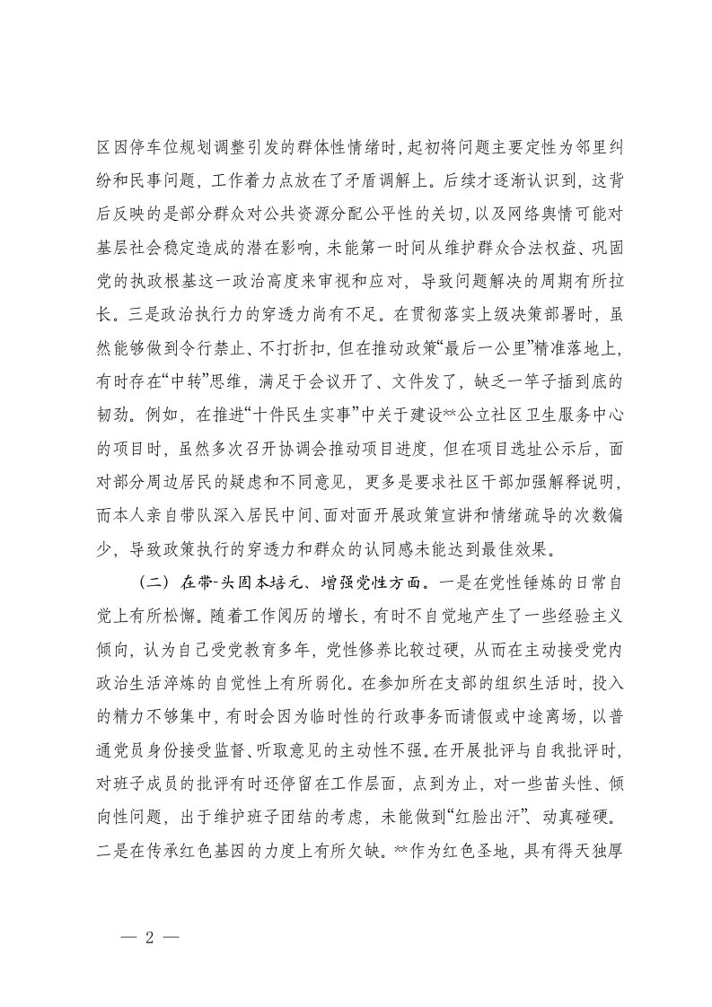 标题:街道党工委武装部长2025年度民主生活会对照检查材料五个带头