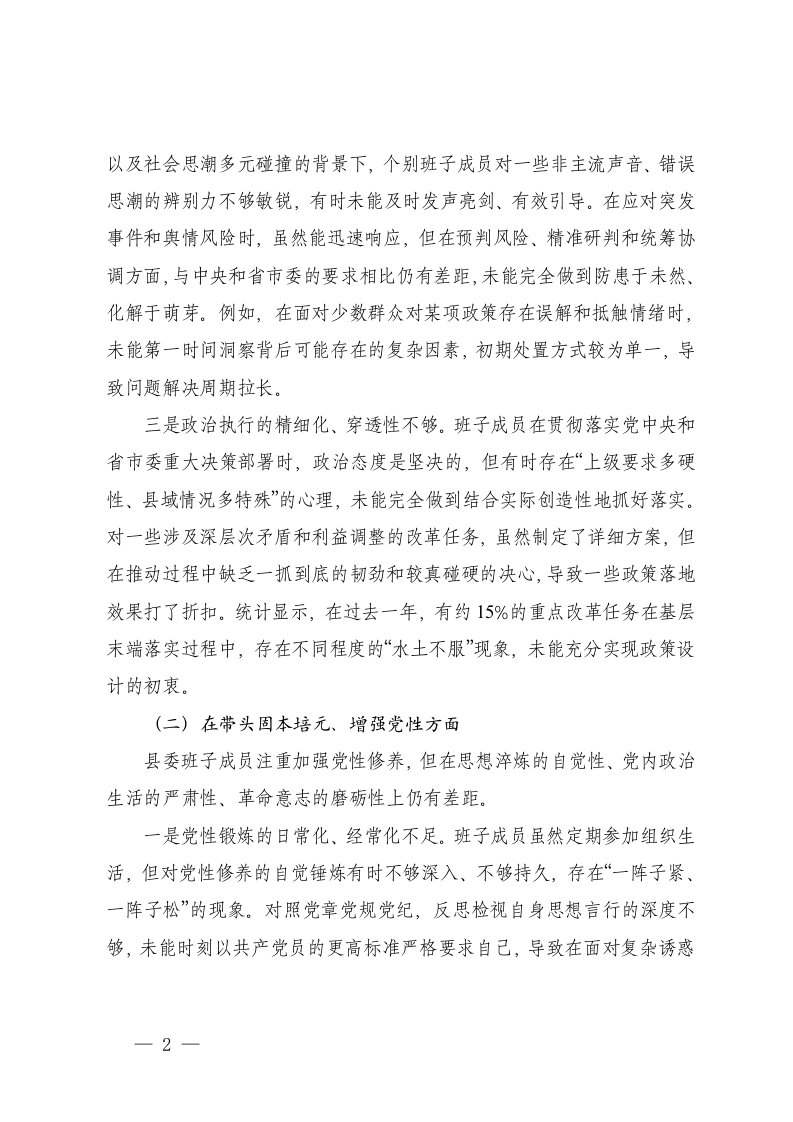 标题:领导班子2025年度民主生活会对照检查材料5个带头