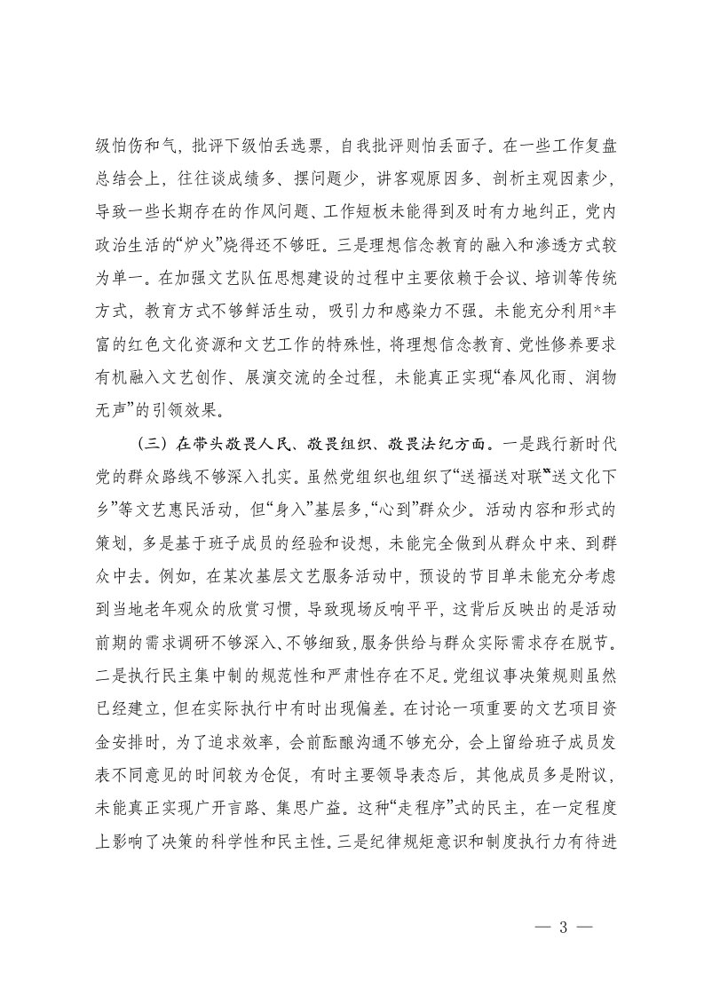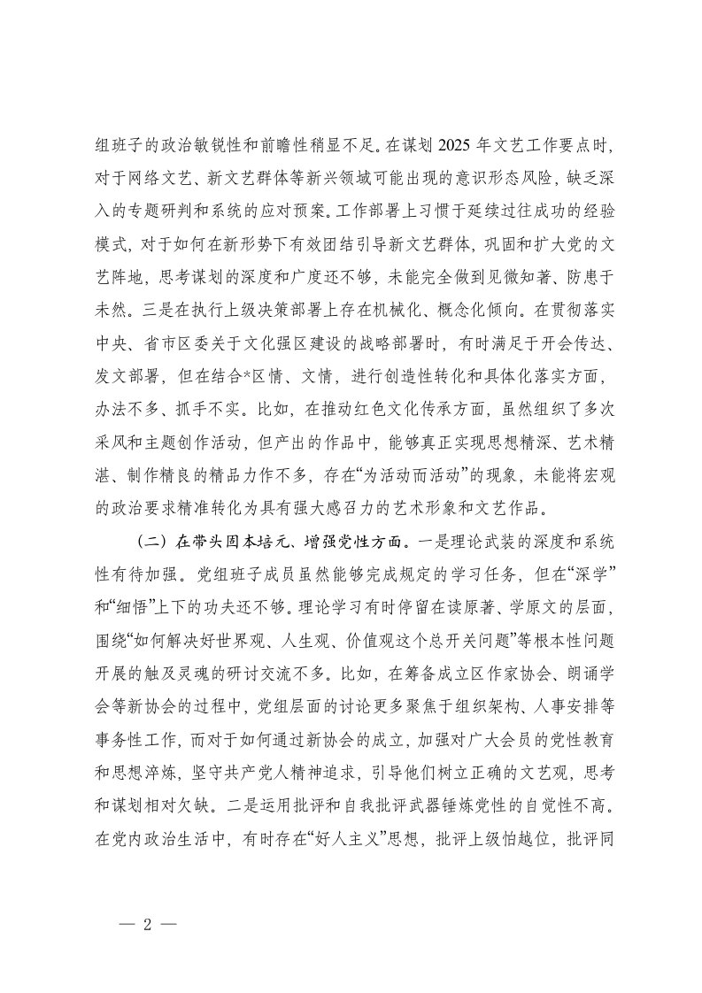 标题:区文联党组2025年度民主生活会班子对照检查材料五个带头