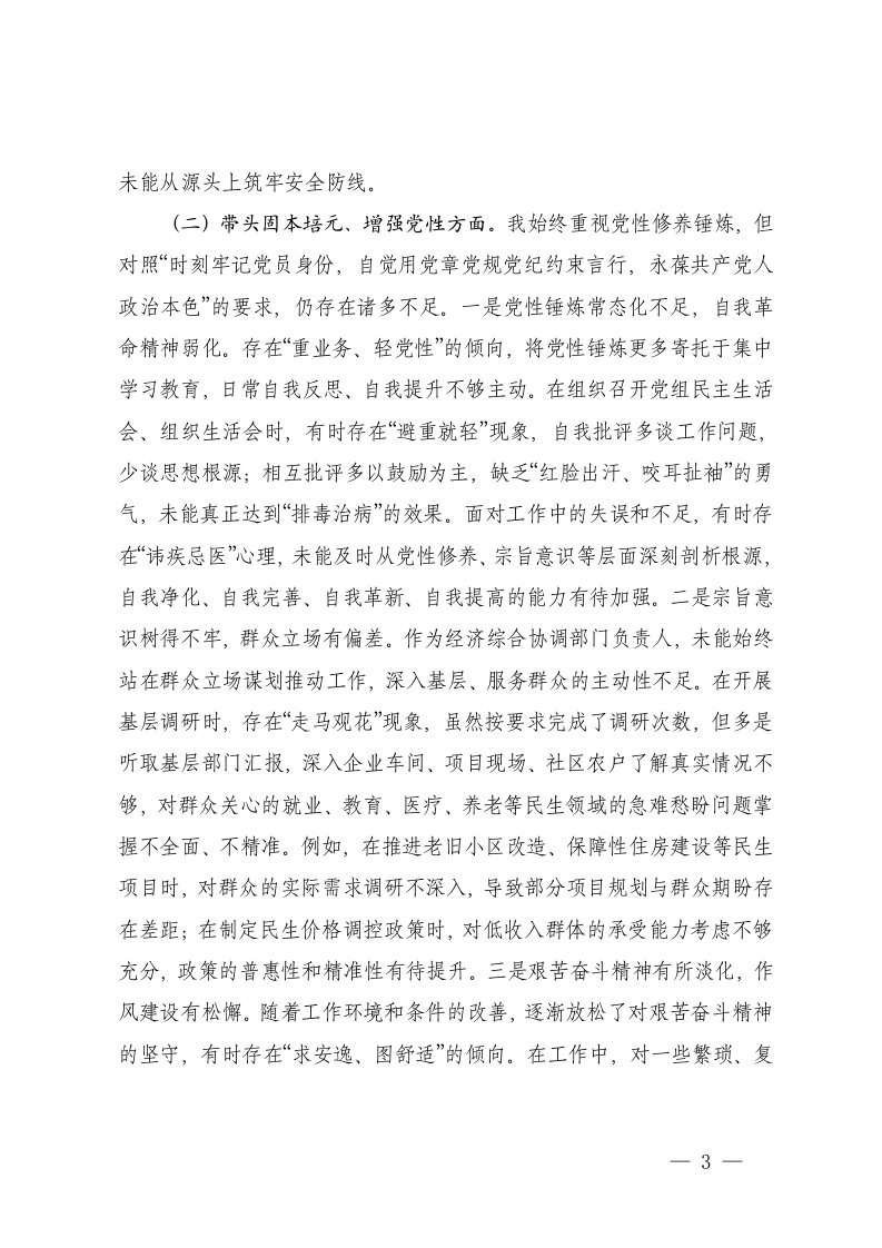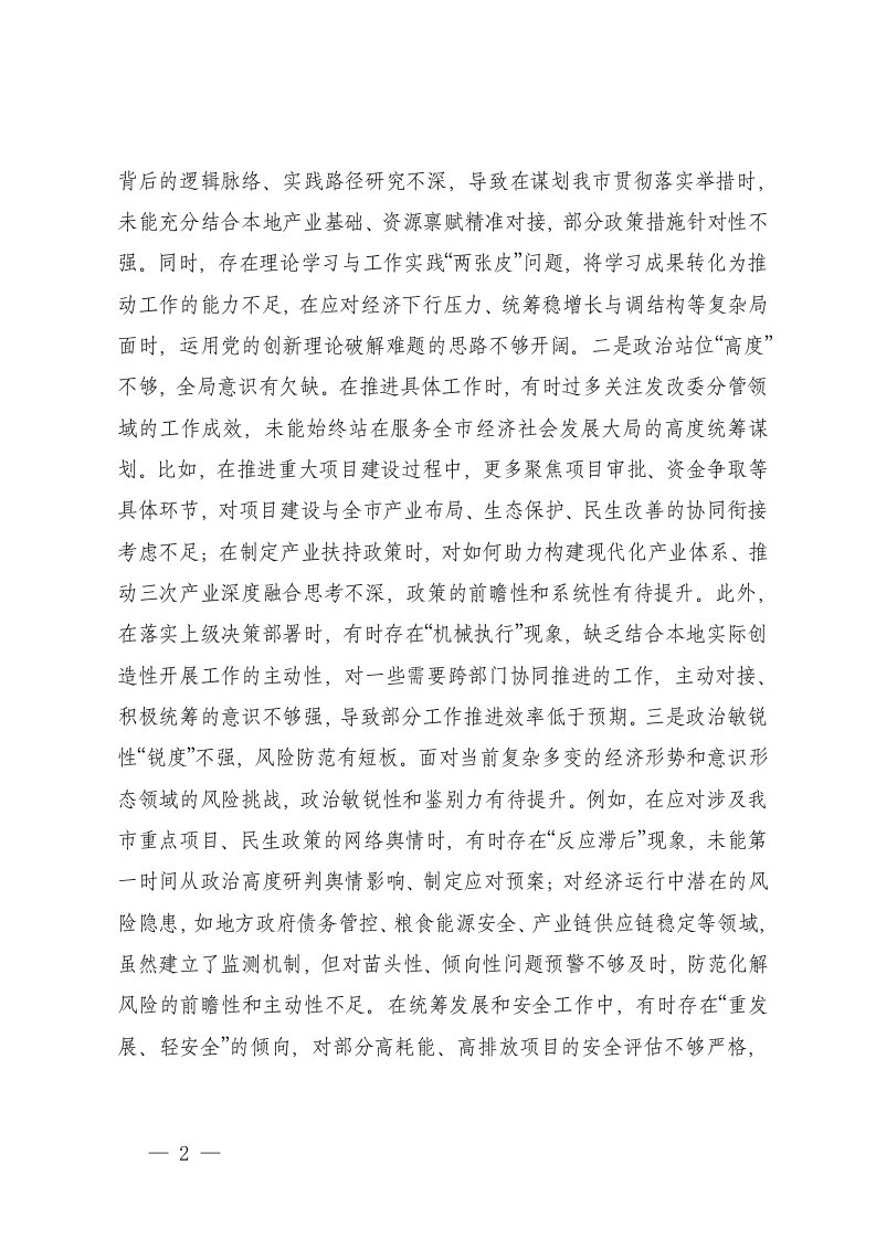 标题:市发改委党组书记2025年专题民主生活会对照检查发言提纲