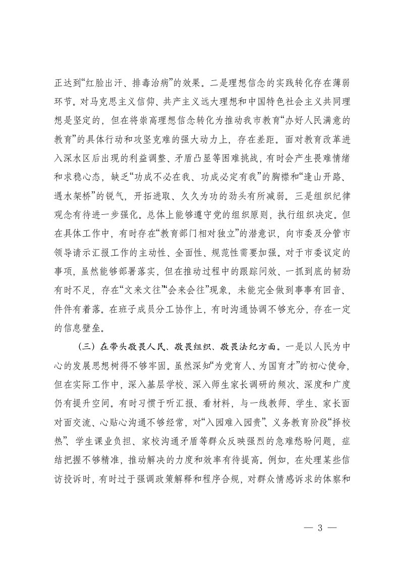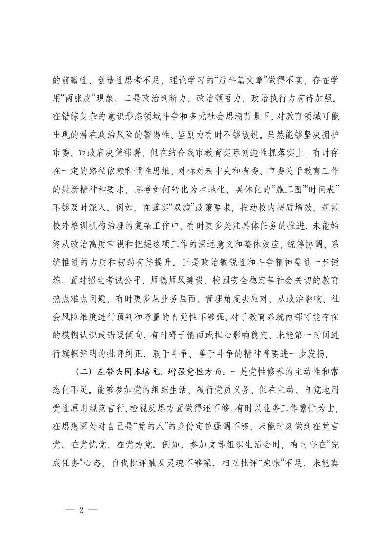 标题:市教育局党组书记2025年度民主生活会对照检查发言材料对照五个带头