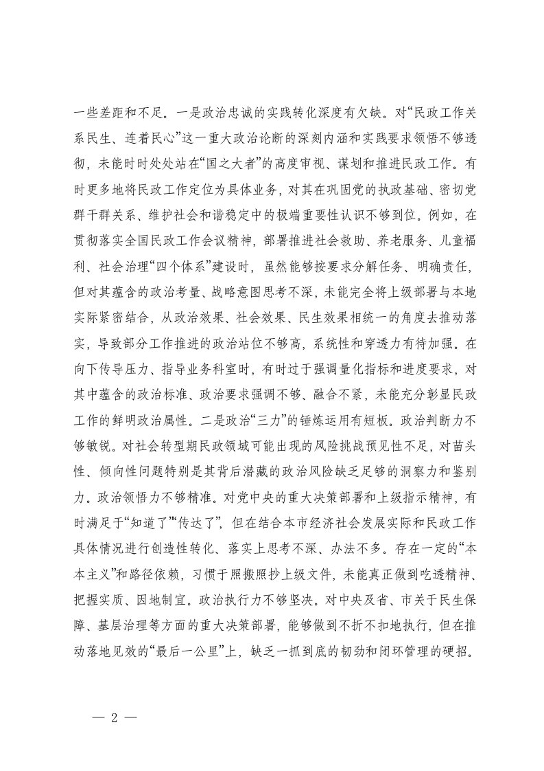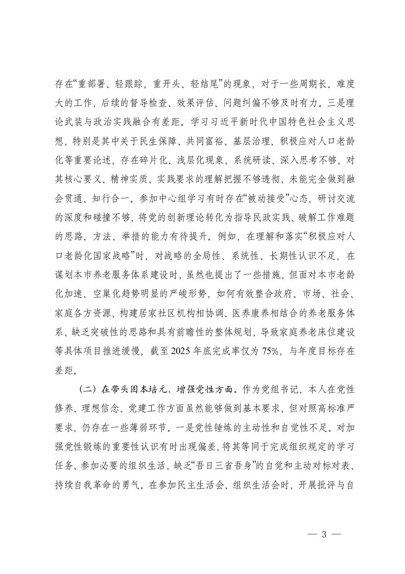市民政局党组书记2025年度专题民主生活会对照检查发言提纲五个带头