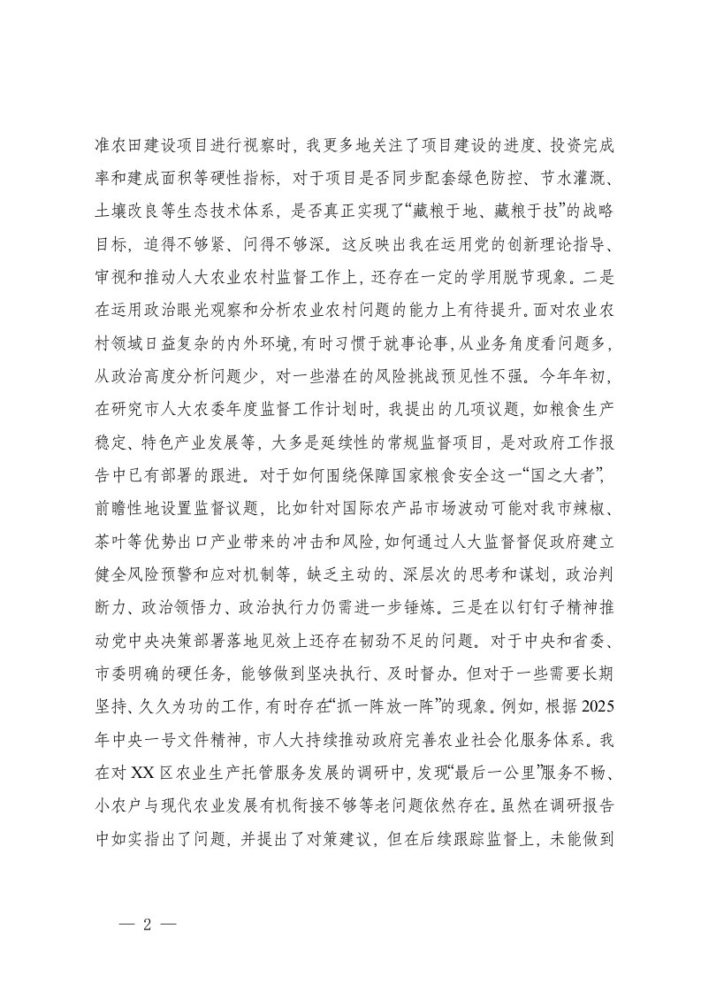 标题:市人大常委会副主任2025年度民主生活会个人五个带头对照检查材料文稿