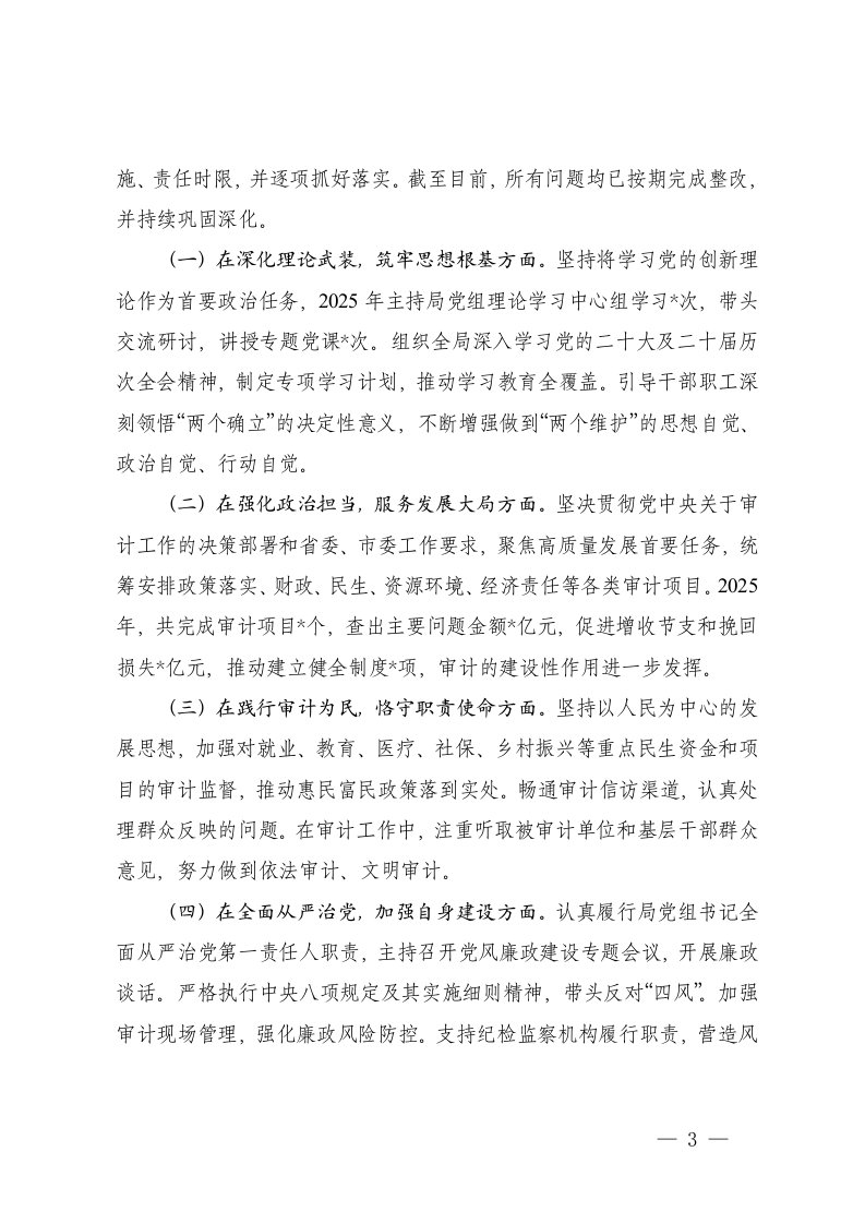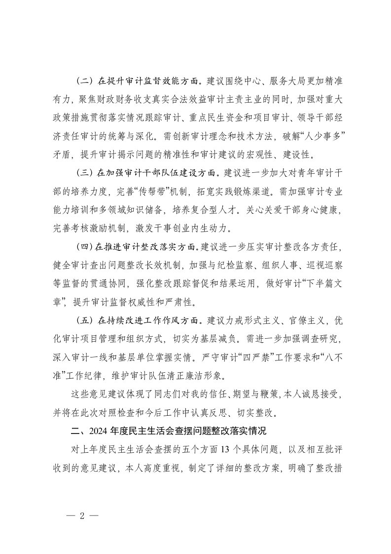标题:市审计局党组书记2025年度民主生活会个人发言提纲五个带头