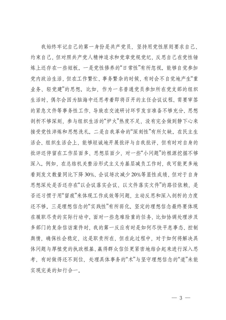 标题:市委机关2025年度民主生活会个人对照检查材料五个带头