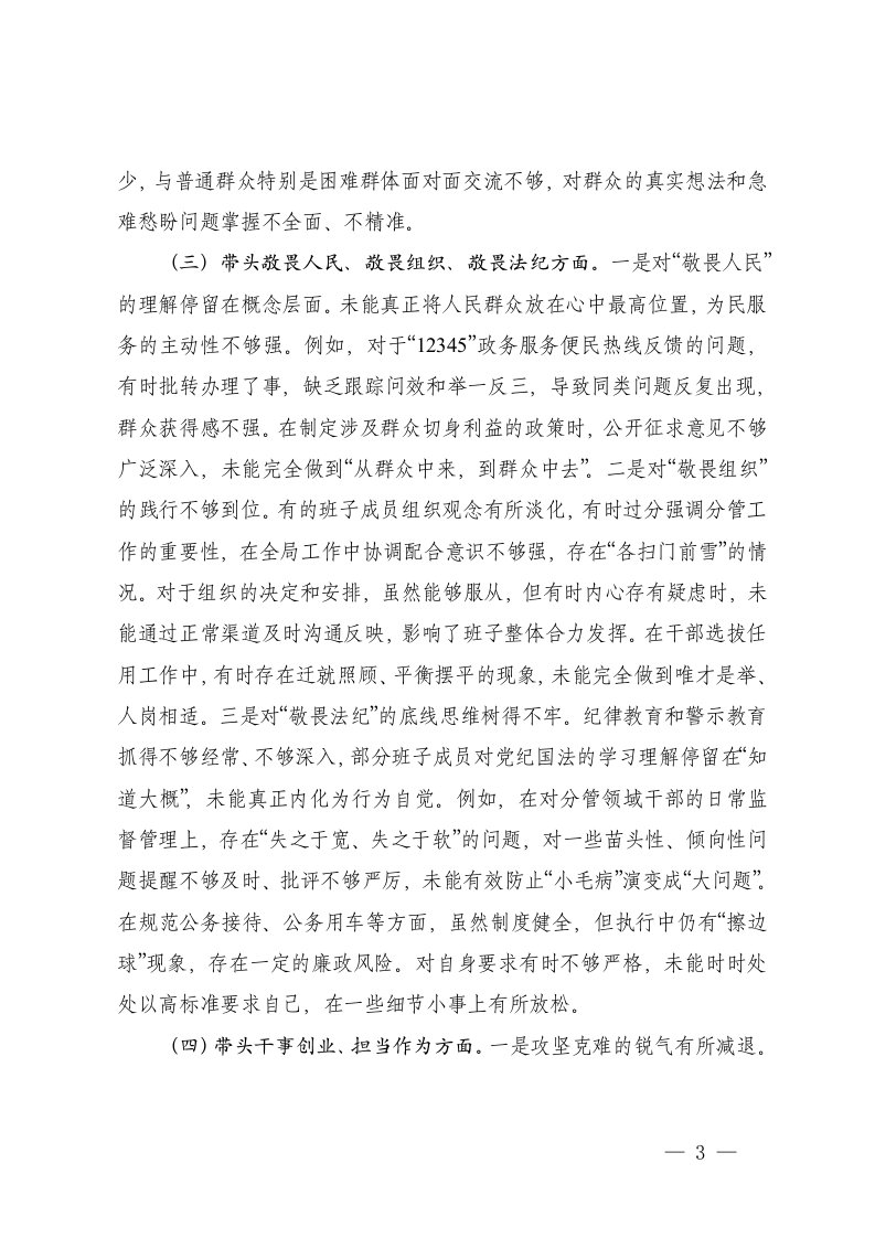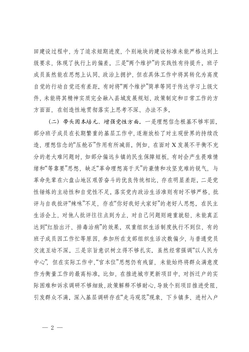 标题:县委领导班子2025年度民主生活会对照检查材料