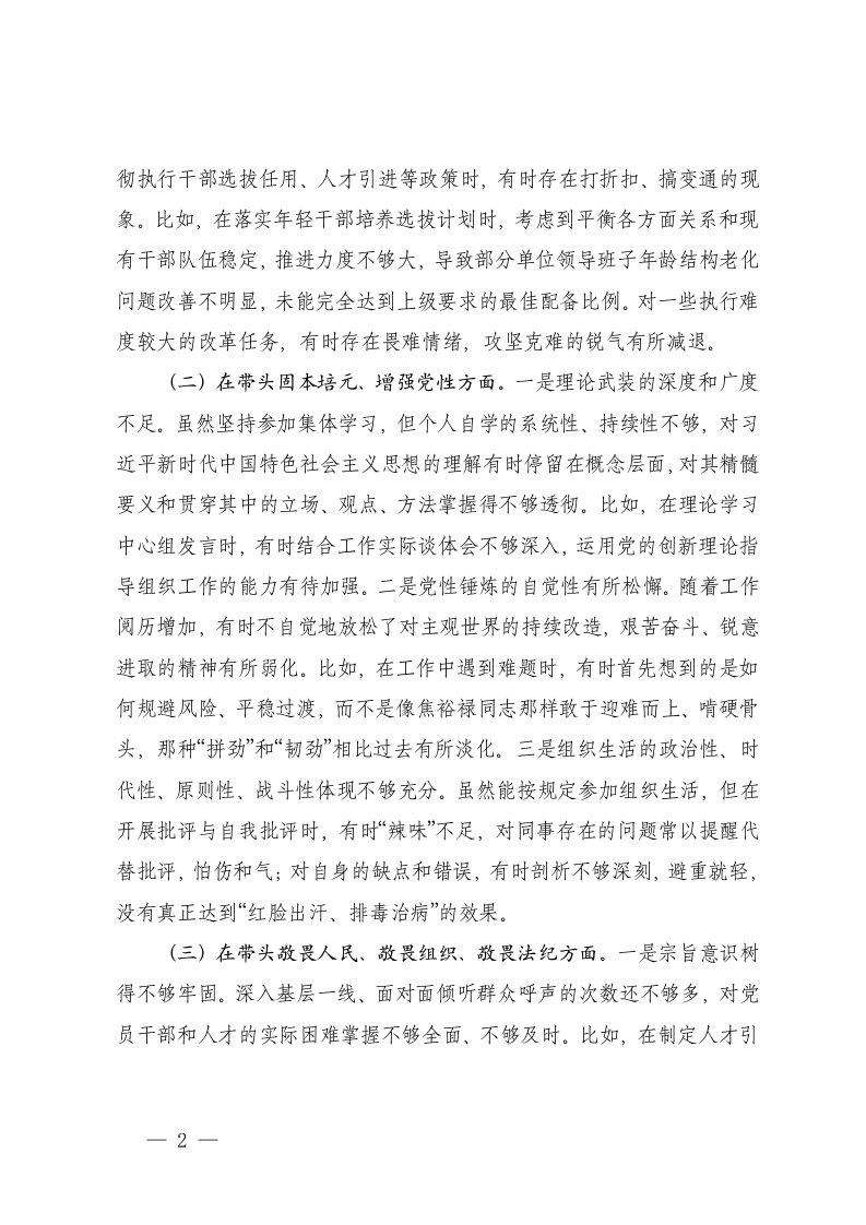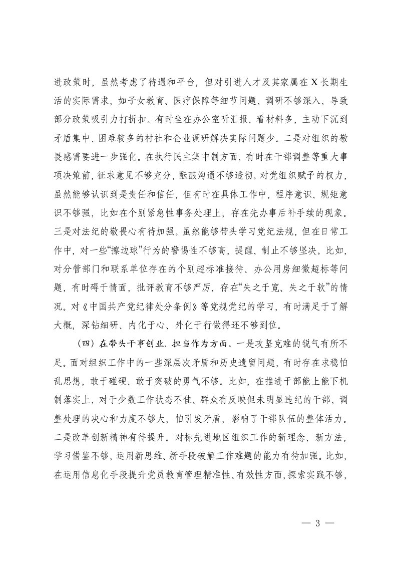 标题:县委组织部部长在2025年度民主生活会个人对照检查材料