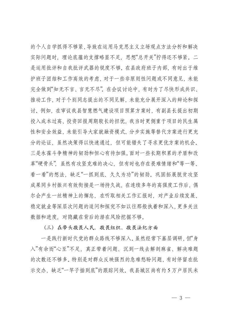标题:县长2025年度民主生活会个人对照检查材料五个带头