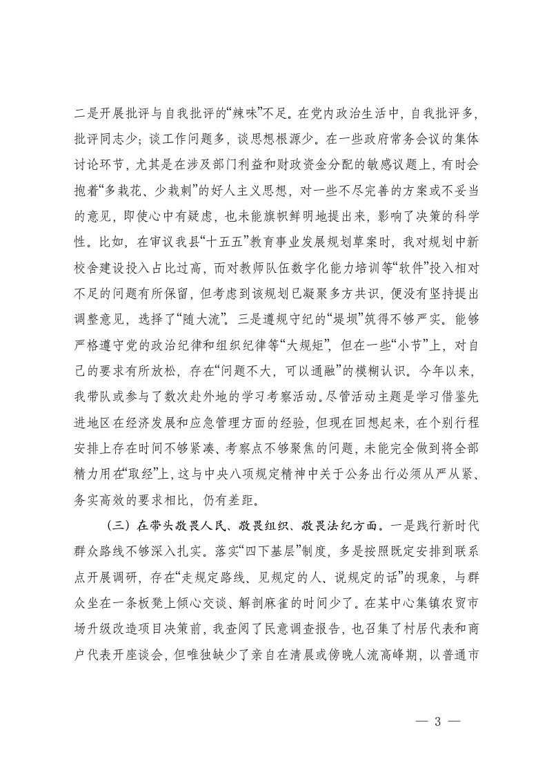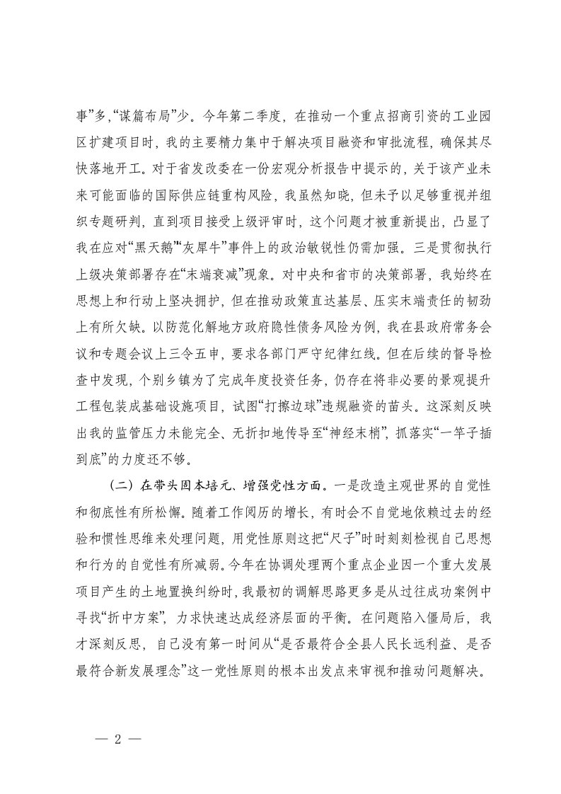 标题:县政府常务副县长2025年度民主生活会个人对照检查材料五个带头