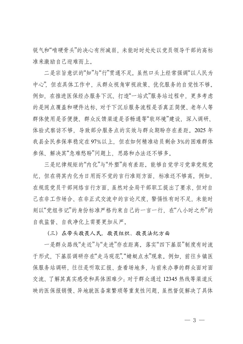 标题:医疗保障局党组书记2025年度民主生活会个人对照检查材料五个带头