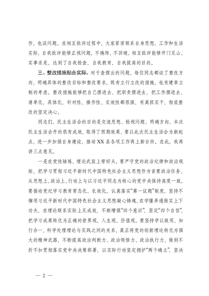 标签: #民主生活会 #讲话 #县委