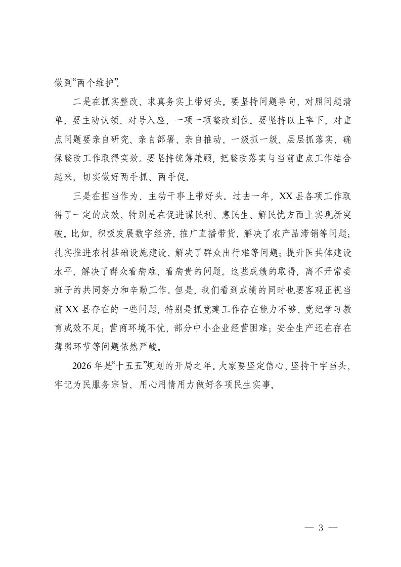 标题:在县委常委班子2025年度民主生活会上的点评讲话