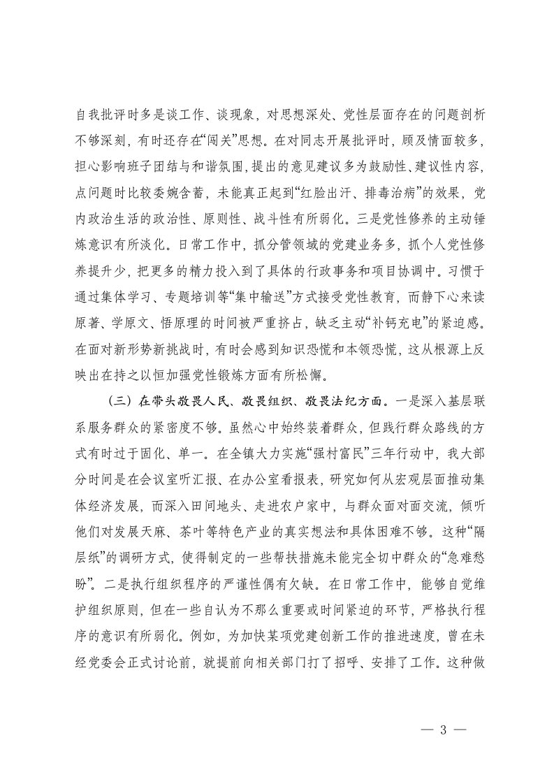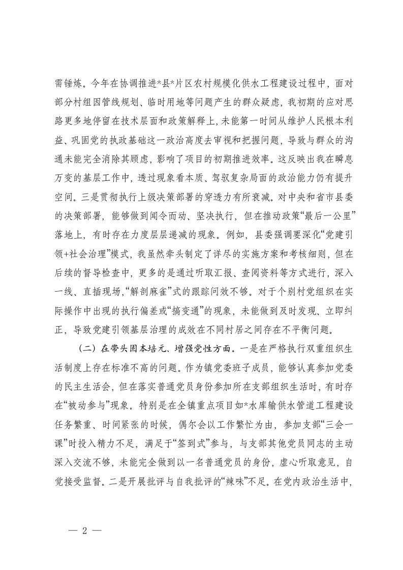 标题:镇党委副书记2025年度民主生活会对照检查材料五个带头