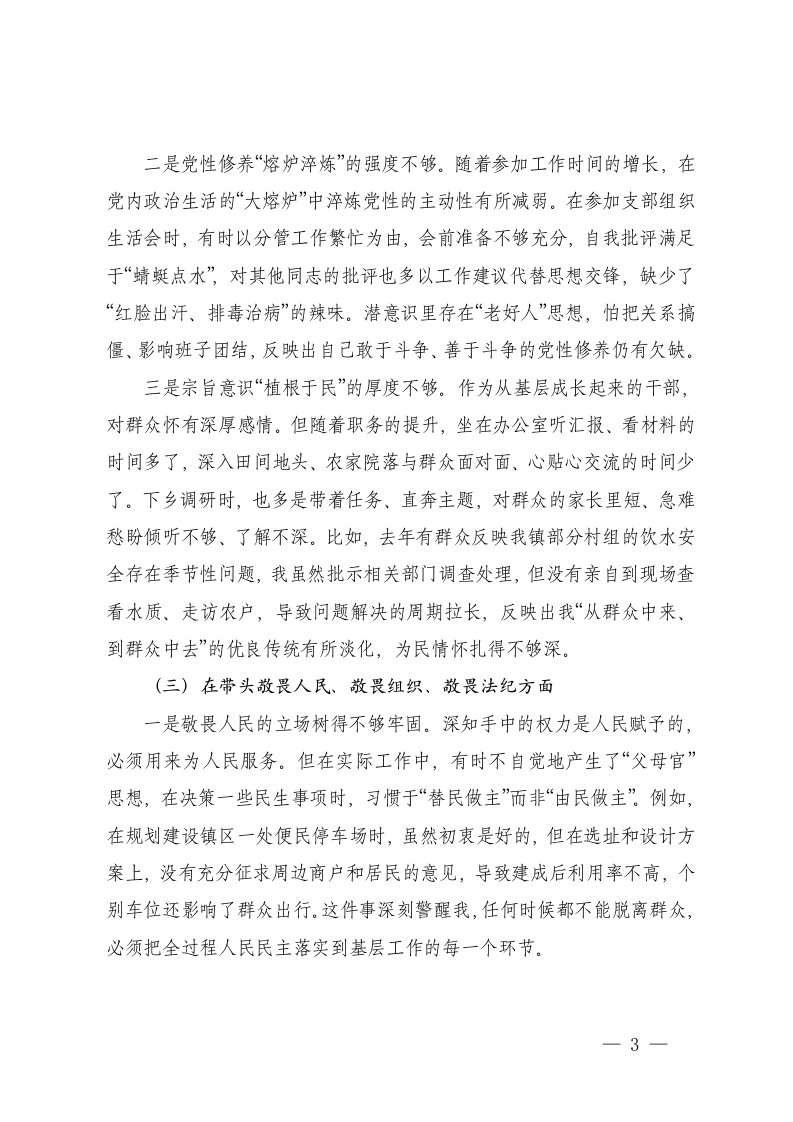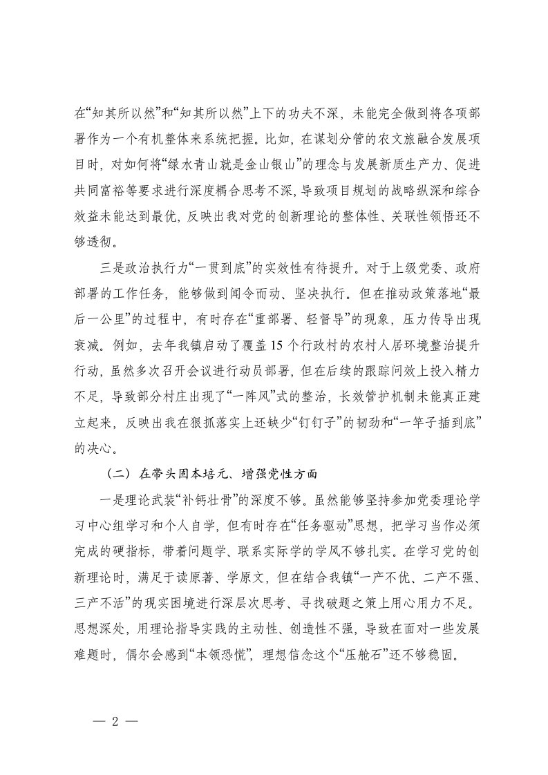 标题:镇党委委员副镇长2025年度民主生活会个人对照检查材料