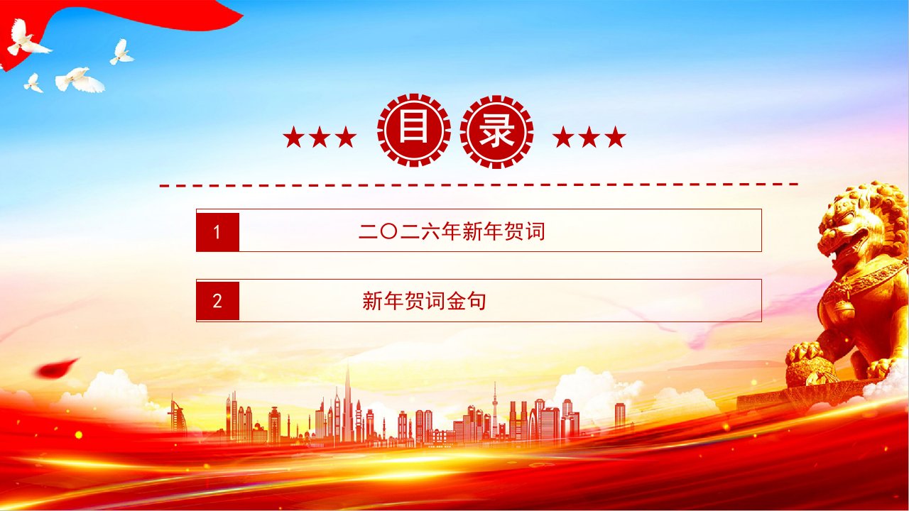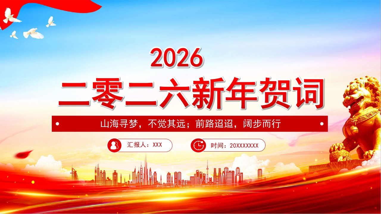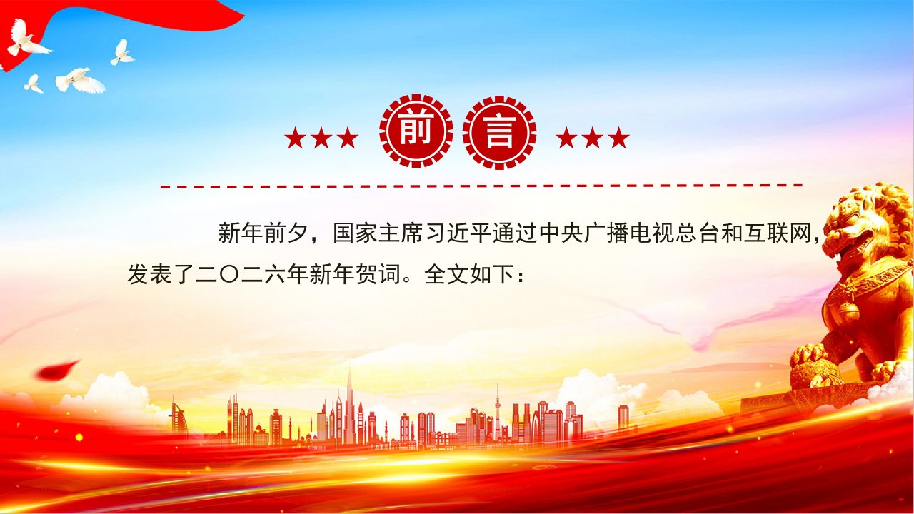 2026微党课「新年贺词ppt模板」主席新年贺词新年贺词金句党课ppt模板(带内容)