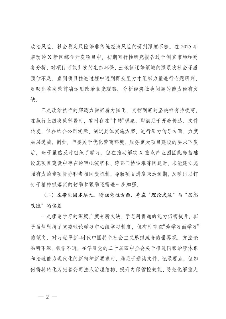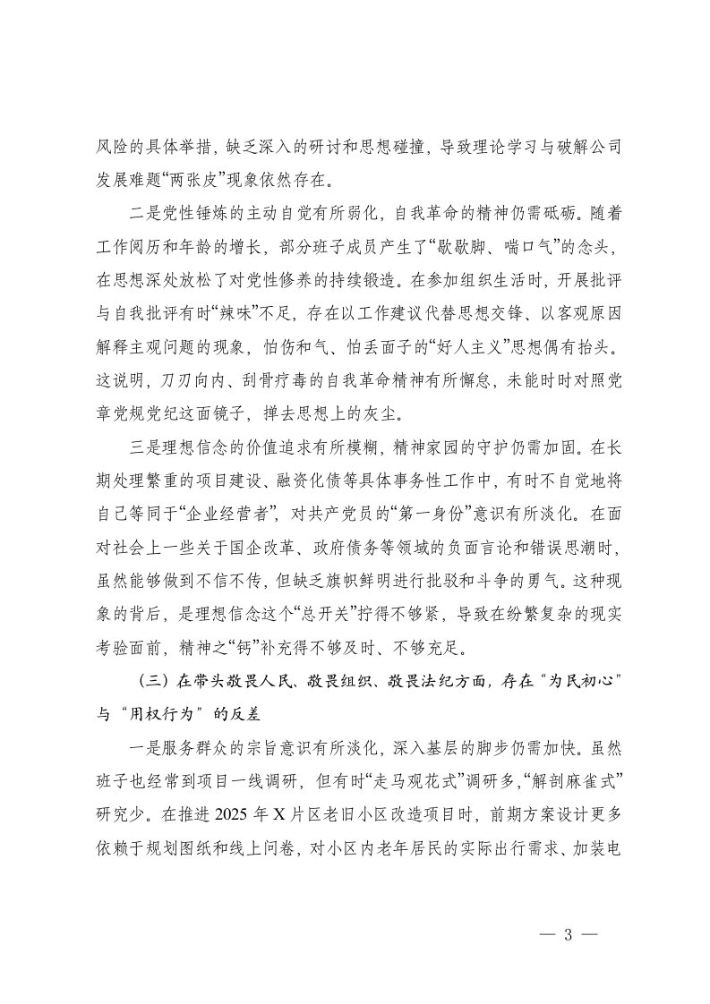 标题:国企2025年度民主生活会领导班子对照检查材料五个带头范文