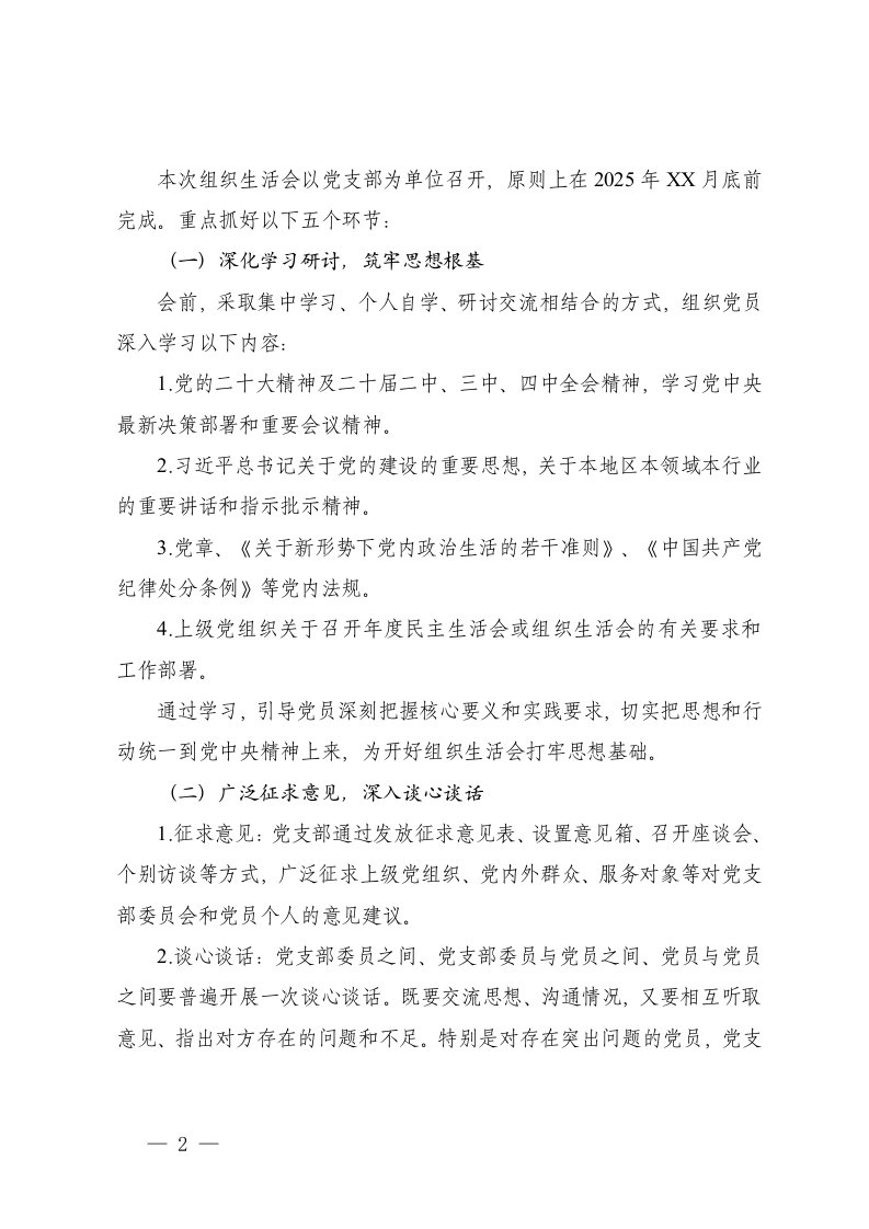 标题:2025年度党支部组织生活会方案2025年度民主生活会实施方案