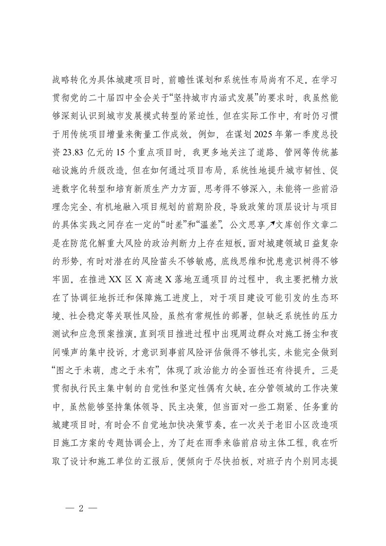 标题:2025年度领导干部在带头干事创业担当作为方面五个方面存在的不足