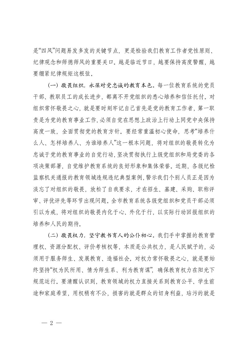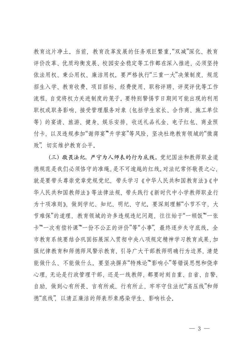 标题:教育主管部门机关2026年元旦春节节前廉政提醒谈话会上的讲话