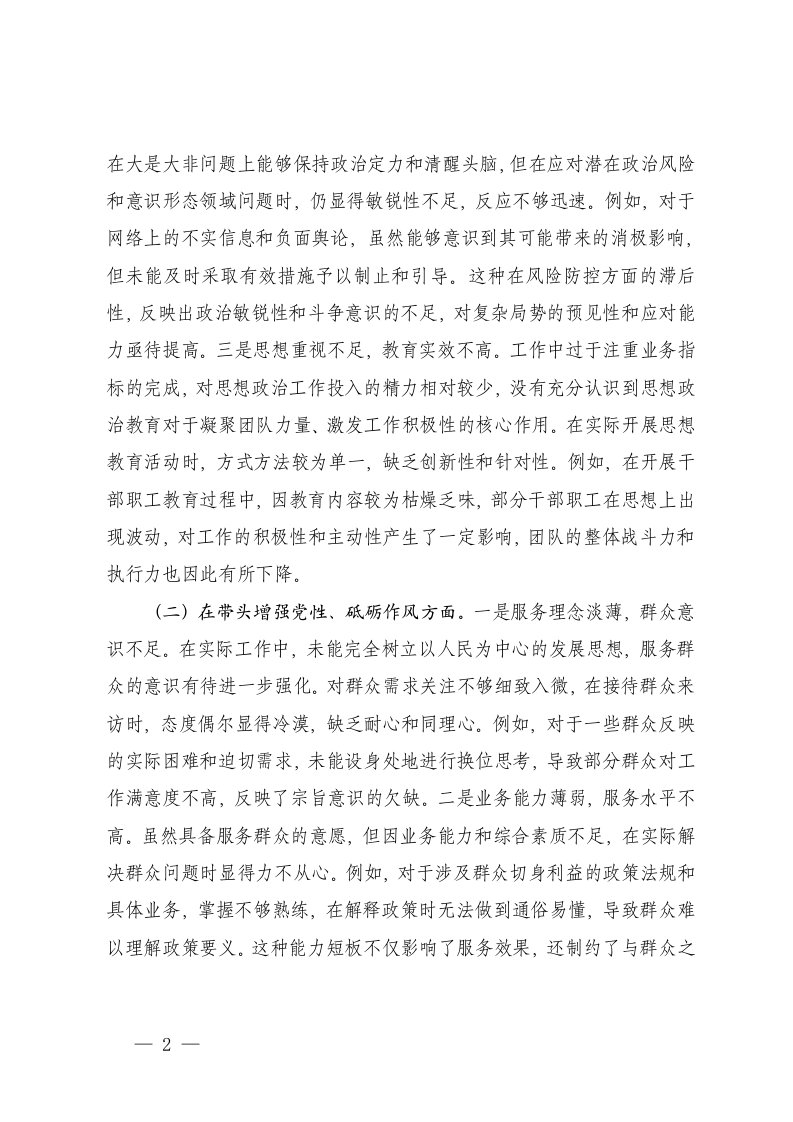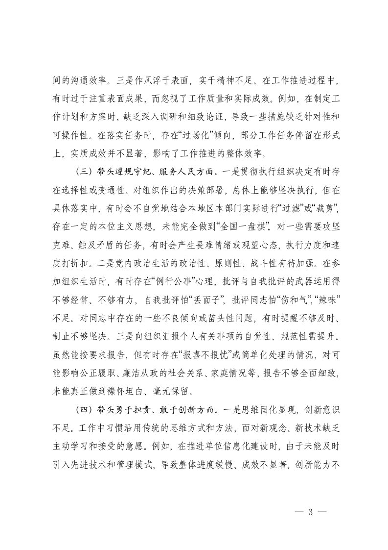标题:通用2025年民主生活会个人五个方面典型案例上一年整改情况存在的不足