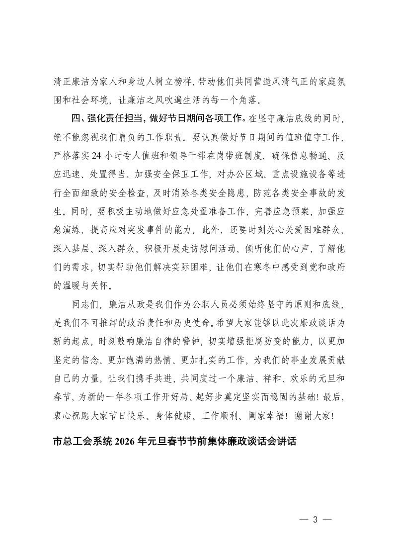 廉政,讲话,春节,元旦,节前,谈话会通用在2026年元旦春节节前集体廉政谈话会上的讲话廉政,讲话,春节,元旦,节前,谈话会通用在2026年元旦春节节前集体廉政谈话会上的讲话