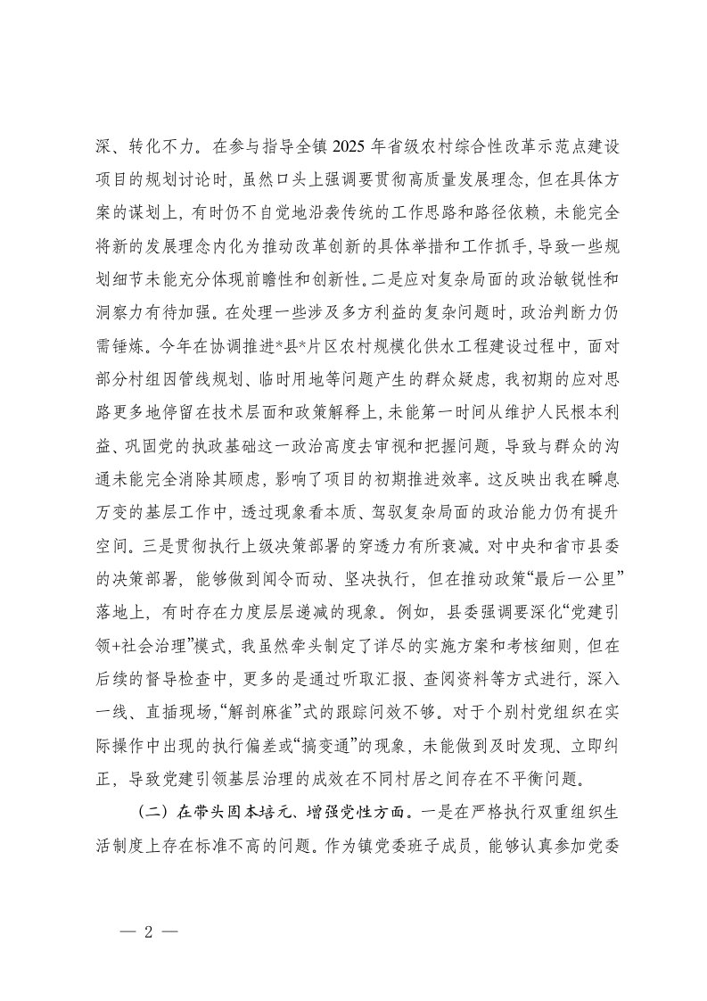 镇党委副书记2025年度在带头强化政治忠诚提高政治能力在带头增强党性砥砺作风带头遵规守纪服务人民带头勇于担责敢于创新带头履行全面从严治党政治责任存在的不足