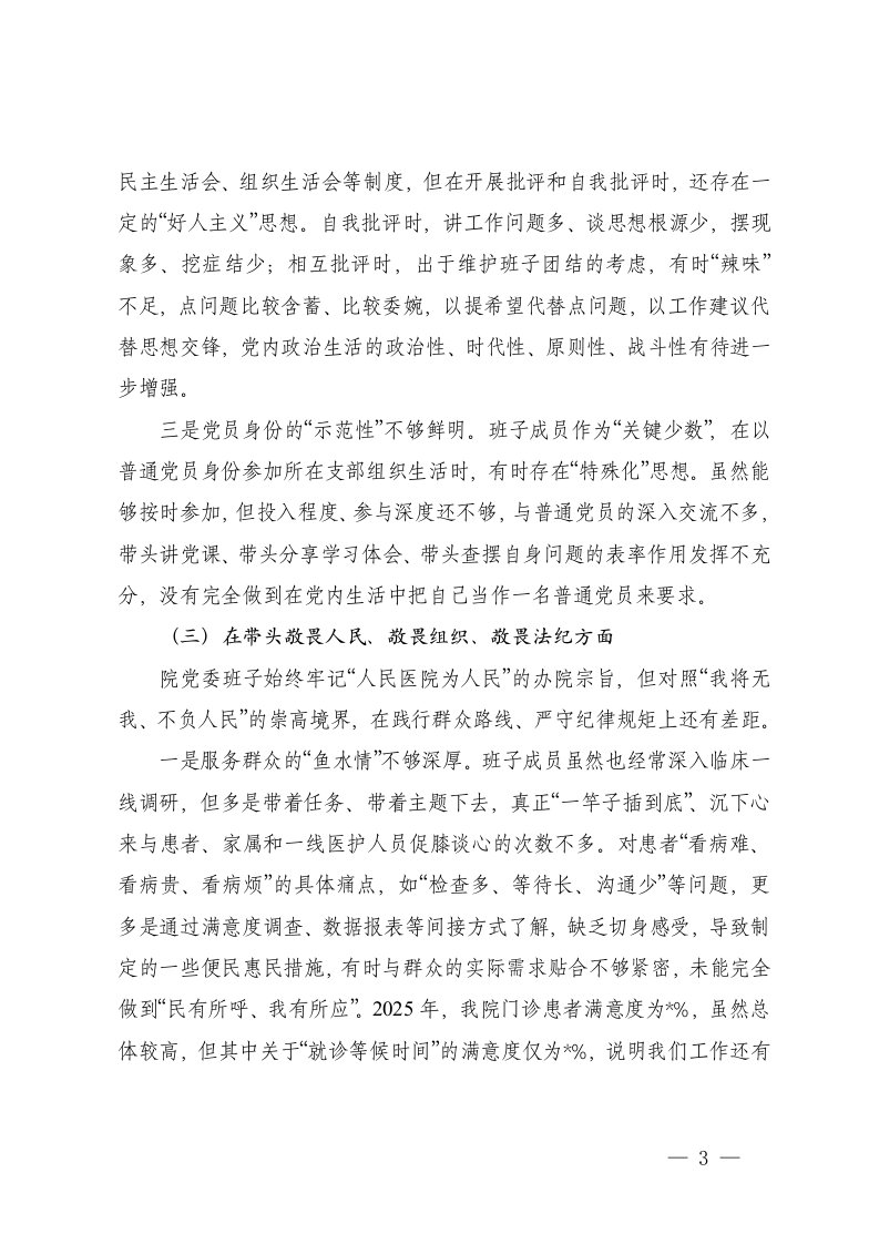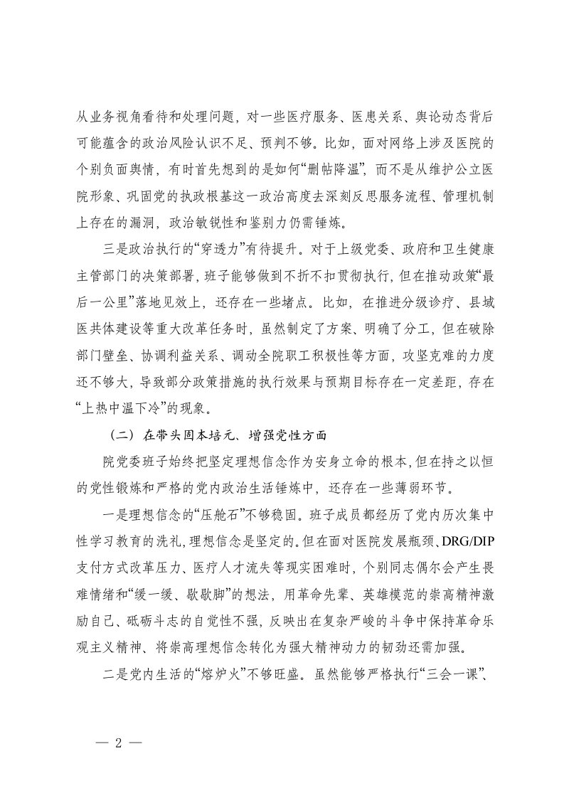 2025年度医院党委领导班子民主生活会五个带头对照检查材料 (1)