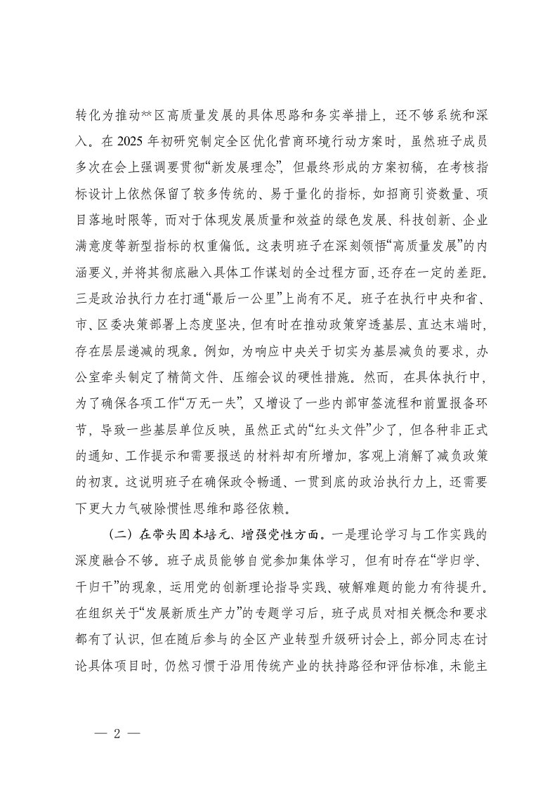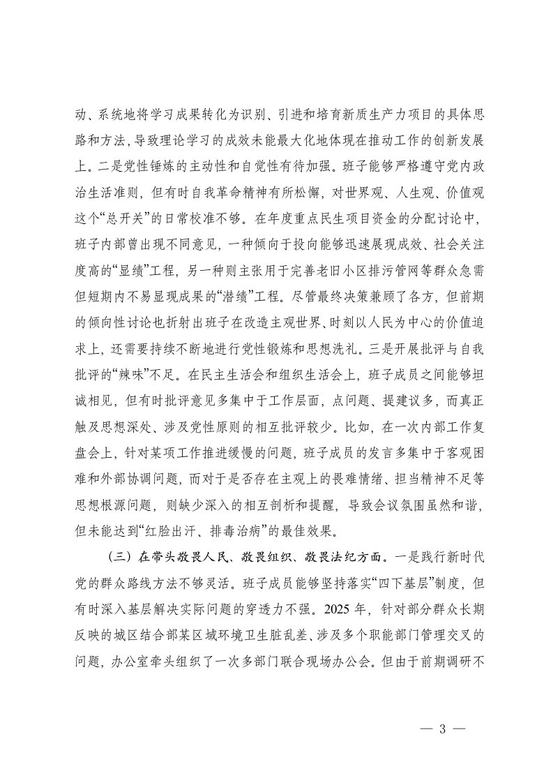 标题:办公室领导班子2025年民主生活会对照检查材料五个带头