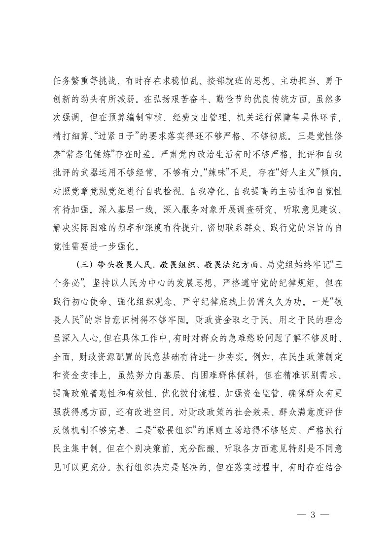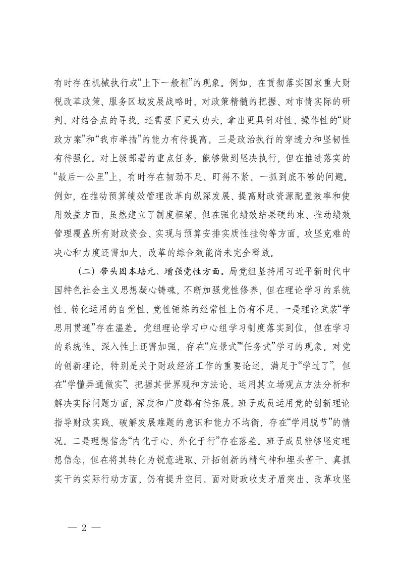 标题:财政机关党组领导班子2025年度民主生活会对照检查材料五个带头