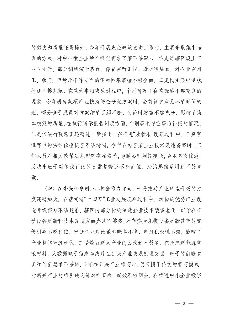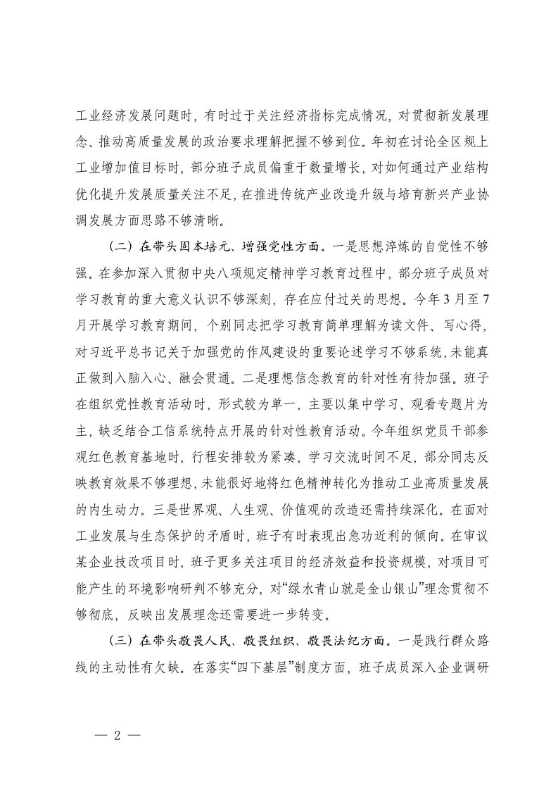 标题:工信机关2025年度民主生活会班子对照检查材料五个带头