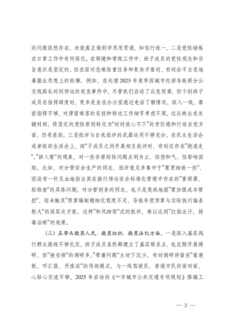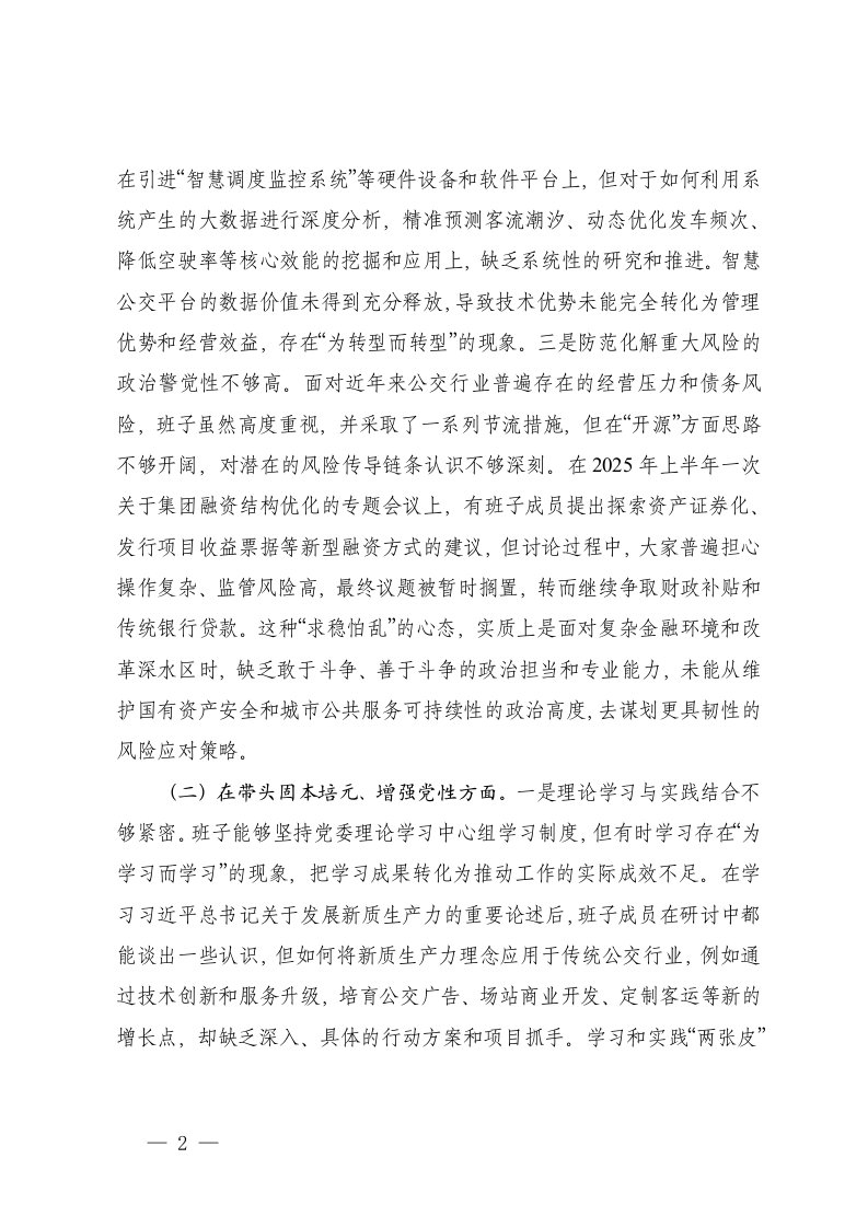 标题:公司领导班子2025年度民主生活会对照检查材料五个带头