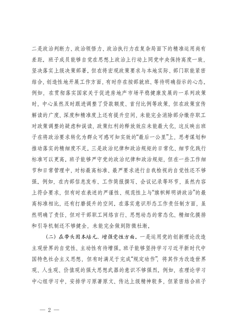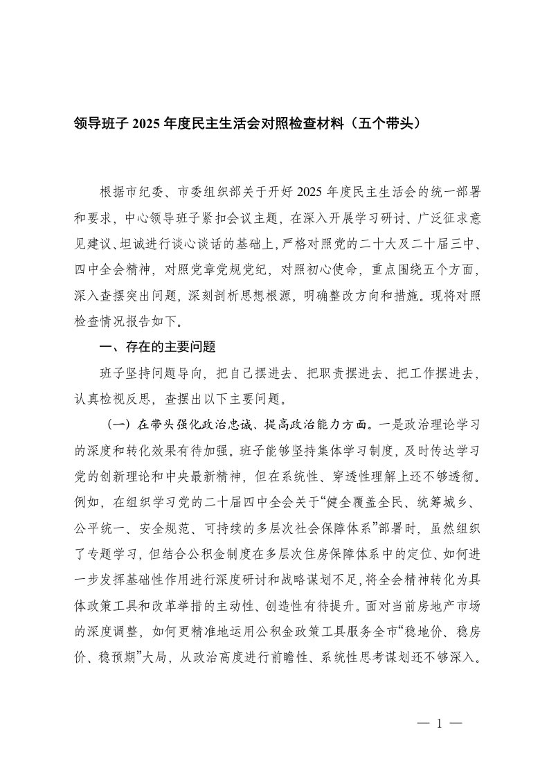 标题:领导班子2025年度民主生活会对照检查材料五个带头