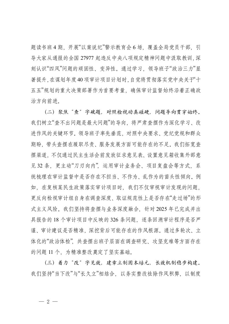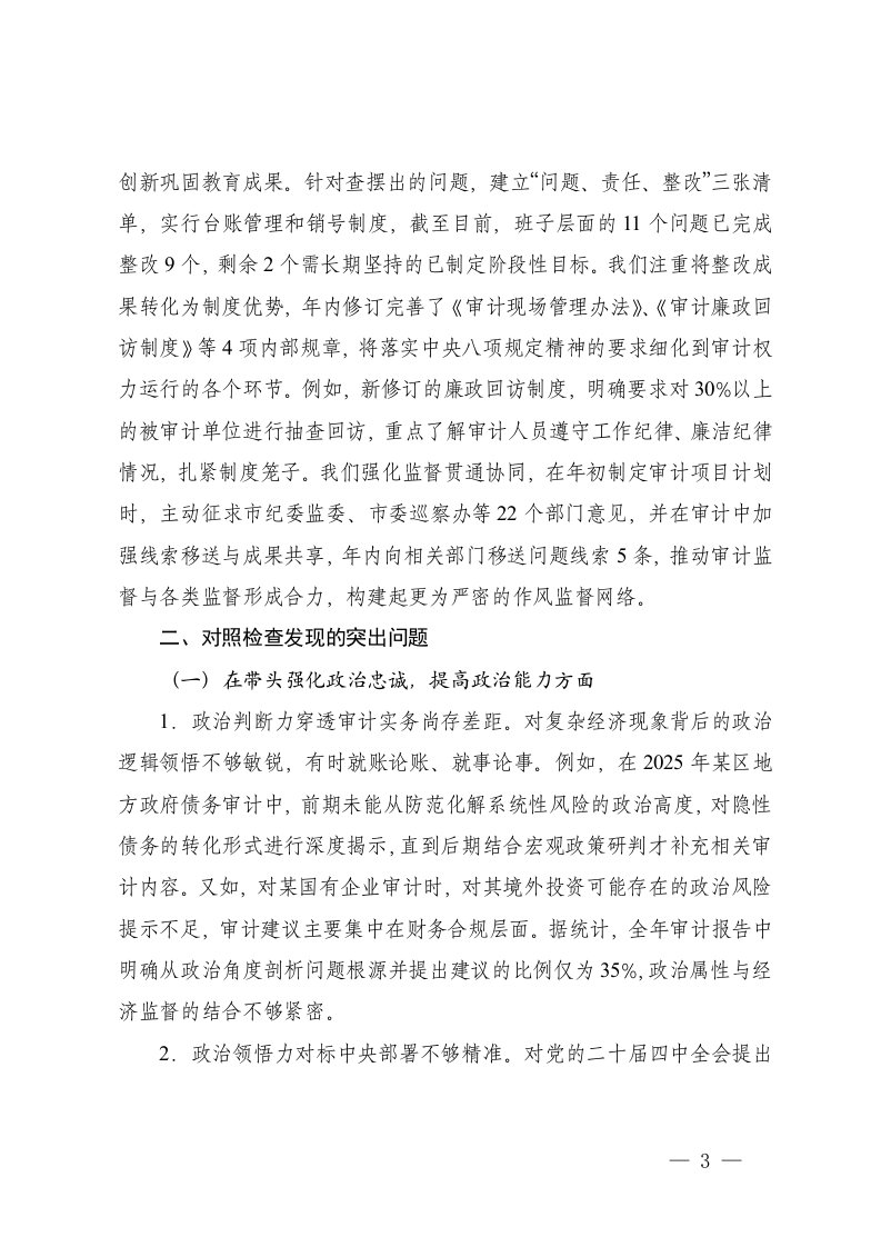 标题:市审计局领导班子2025年度民主生活会对照检查材料