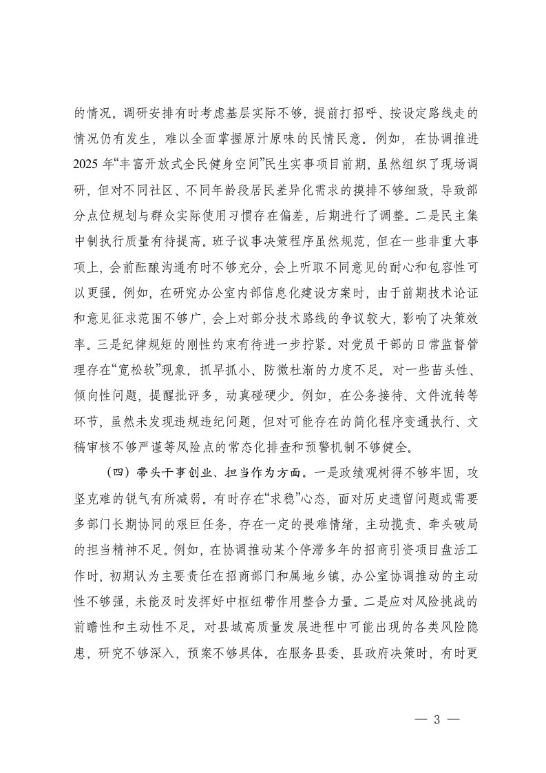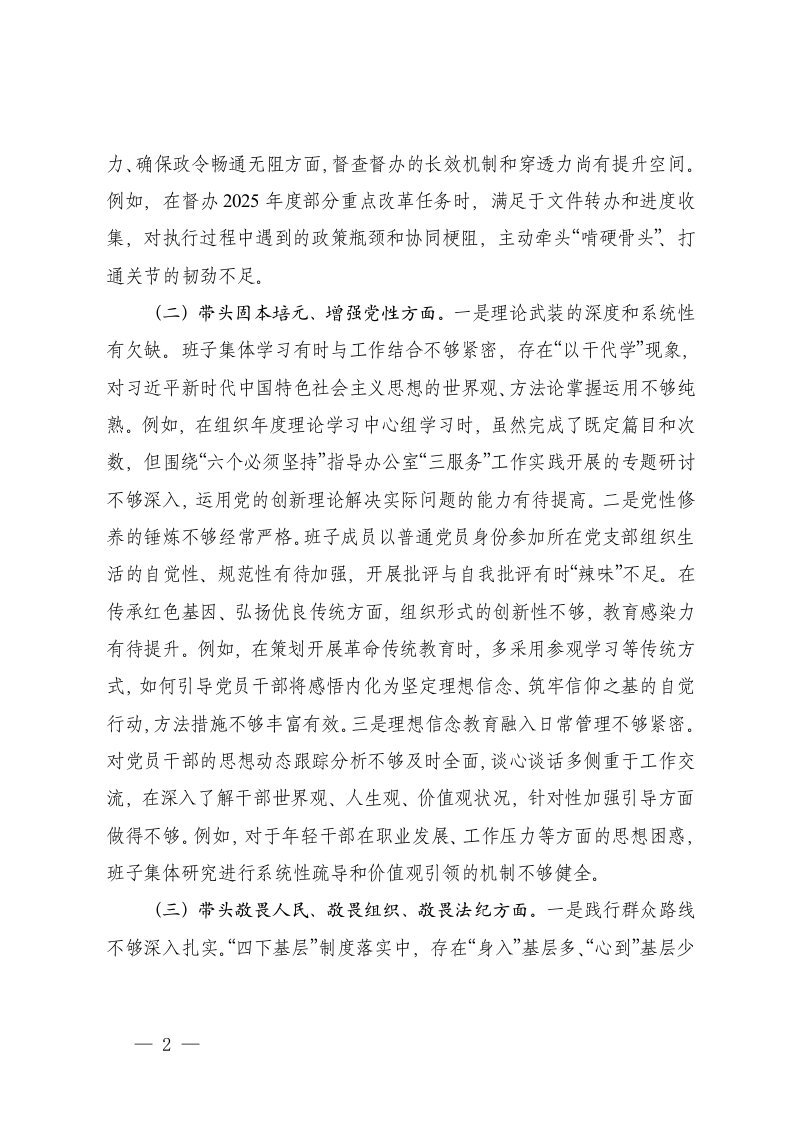 标题:县政府办公室领导班子2025年度民主生活会对照检查材料五个带头