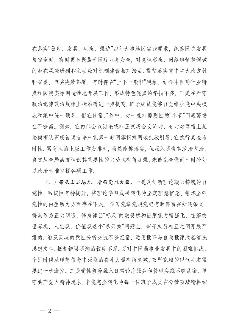 标题:医院党委领导班子2025年度民主生活会对照检查材料五个带头