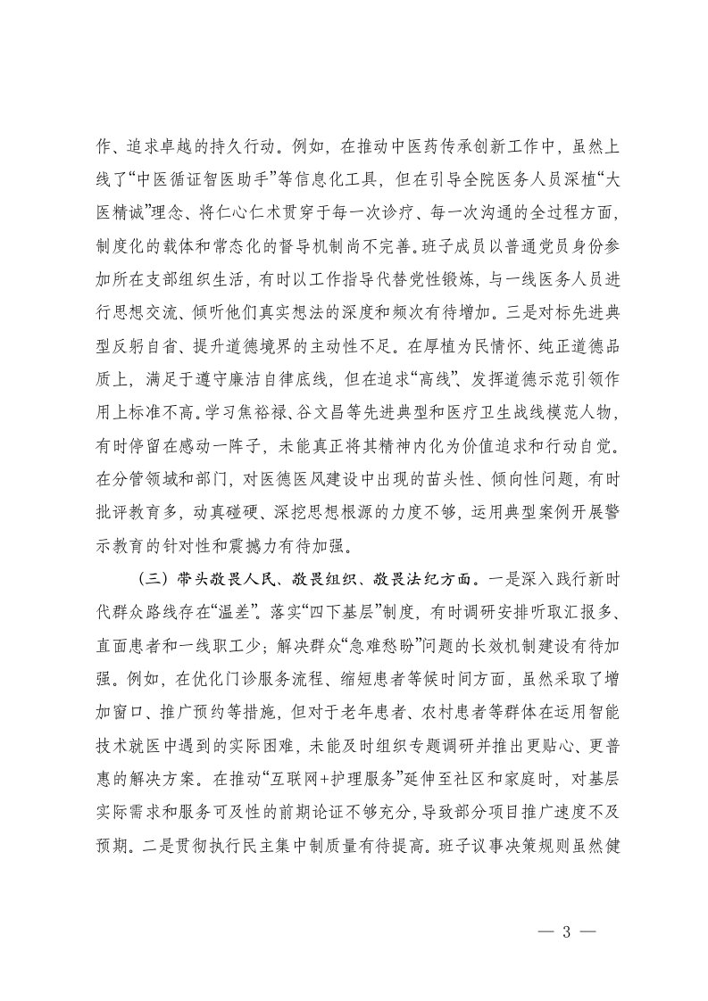 标签: #民主生活会 #对照检查材料 #医院