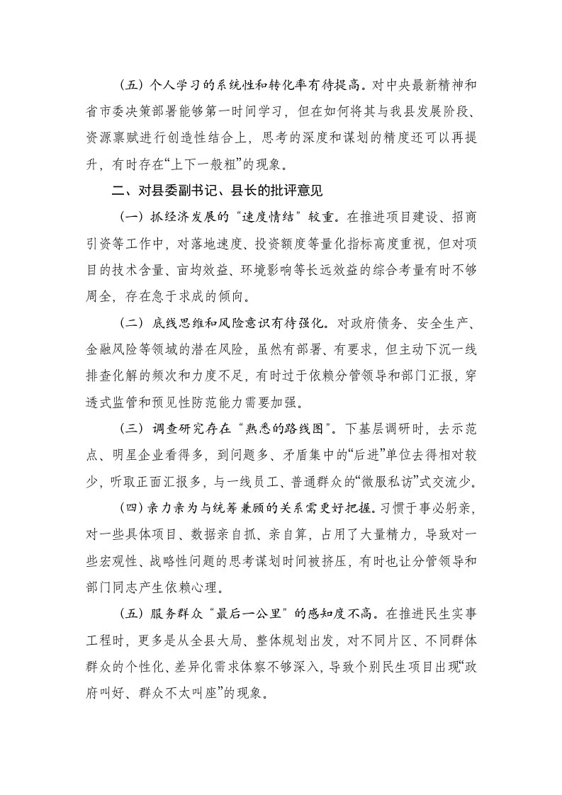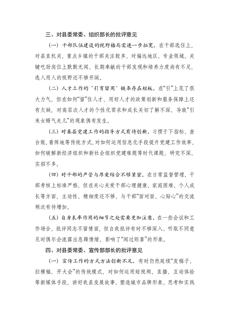 标题:4篇县委常委班子2025年度民主生活会相互批评意见