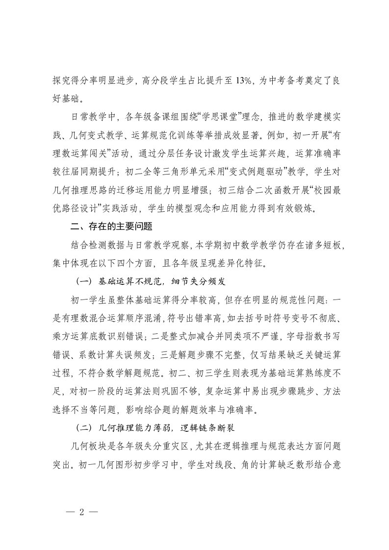 报告,教学质量2025-2026年秋季第一学期初中数学教学质量分析报告报告,教学质量2025-2026年秋季第一学期初中数学教学质量分析报告