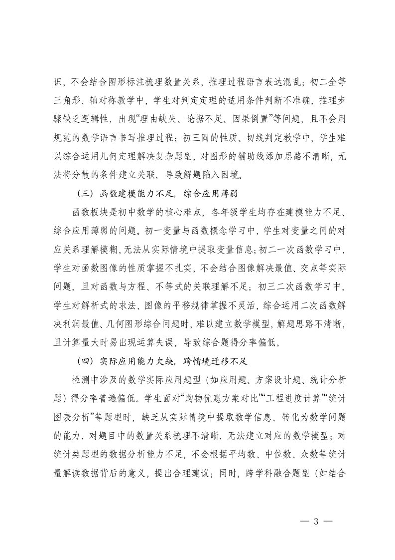 标题:2025-2026年秋季第一学期初中数学教学质量分析报告