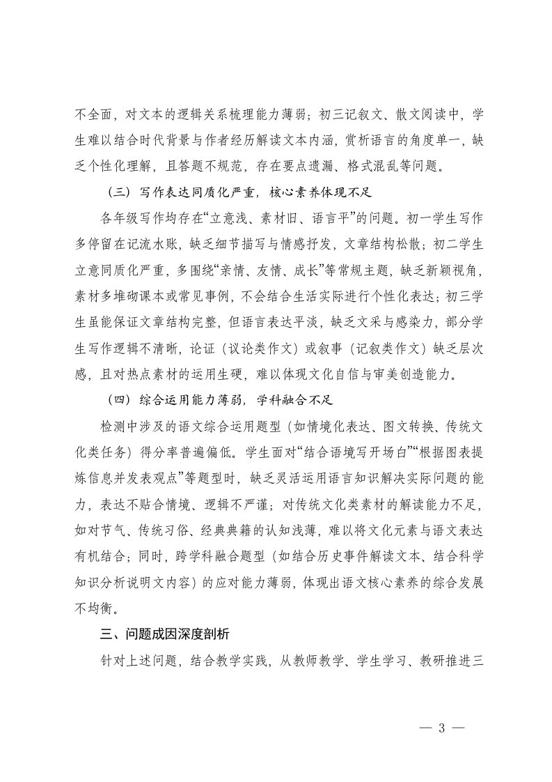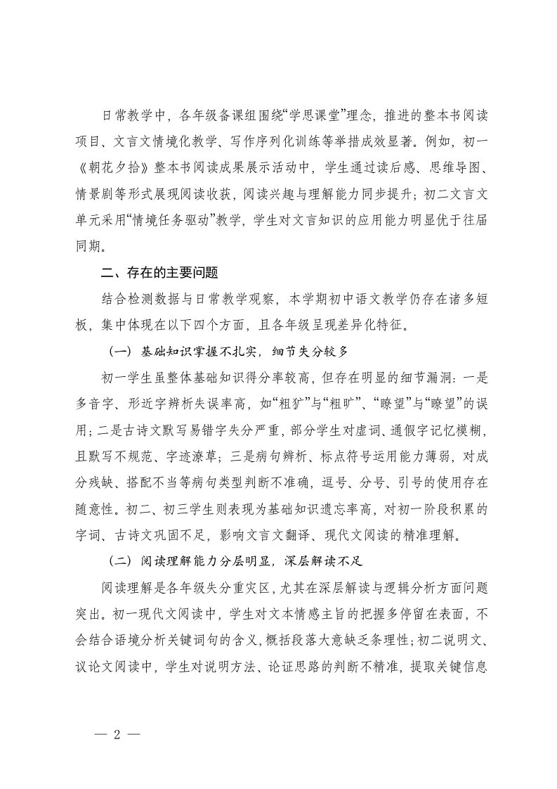 标题:2025-2026年秋季第一学期初中语文教学质量分析报告