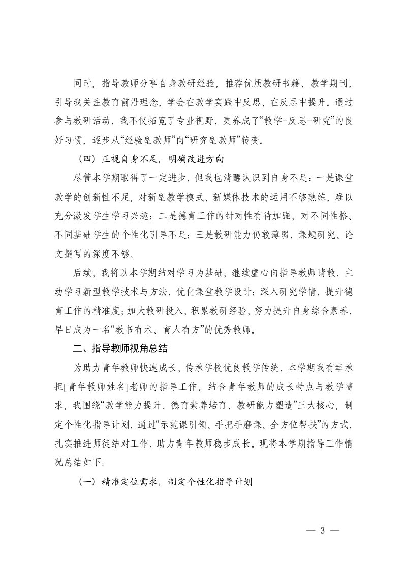 标题:2025-2026学年秋季第一学期师徒结对工作总结青年教师指导教师