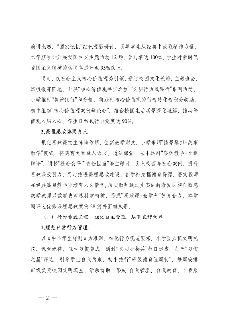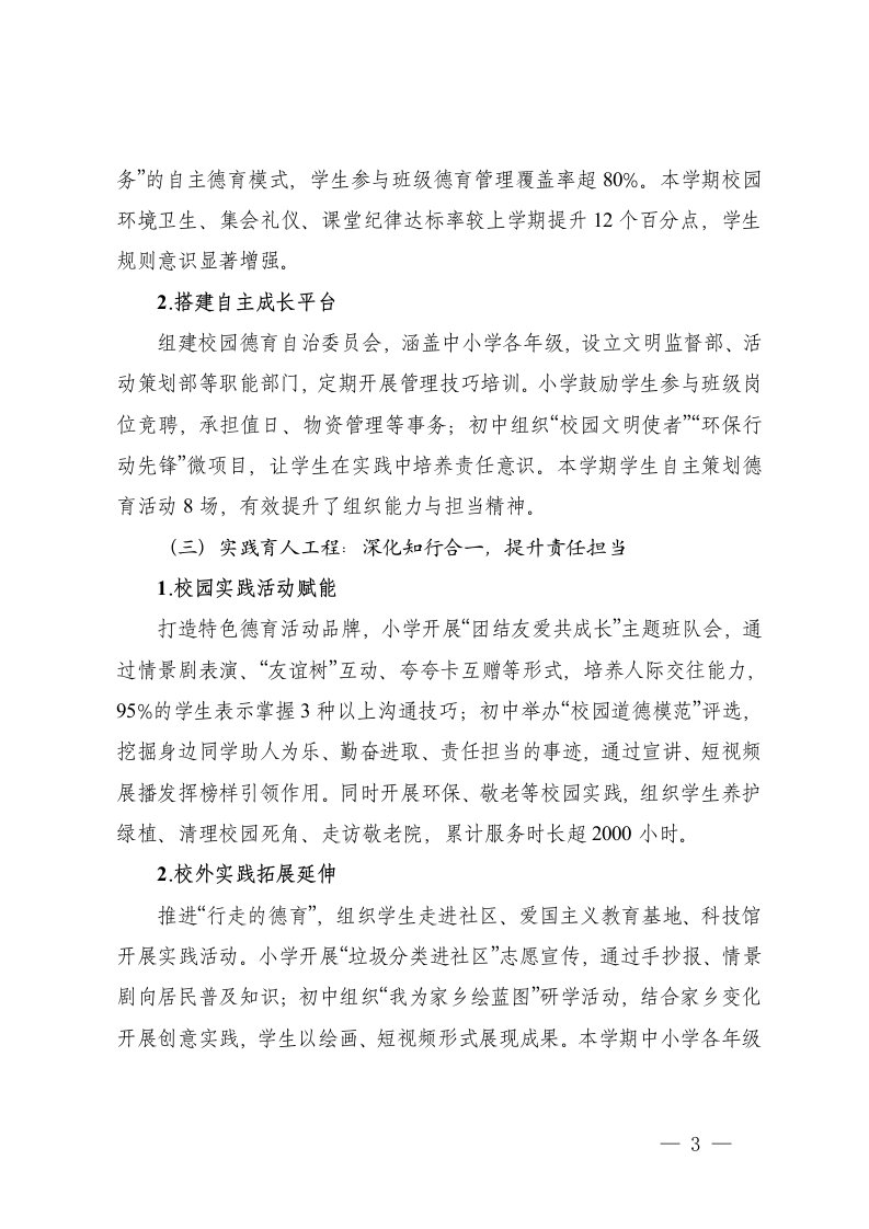 标题:2025-2026学年秋季第一学期中小学德育工作总结
