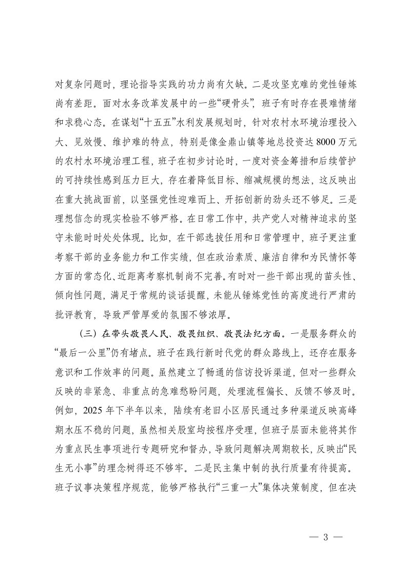 班子在带头强化政治忠诚提高政治能力在带头固本培元增强党性在带头敬畏人民敬畏组织敬畏法纪在带头干事创业担当作为在带头坚决扛起管党治党责任存在不足