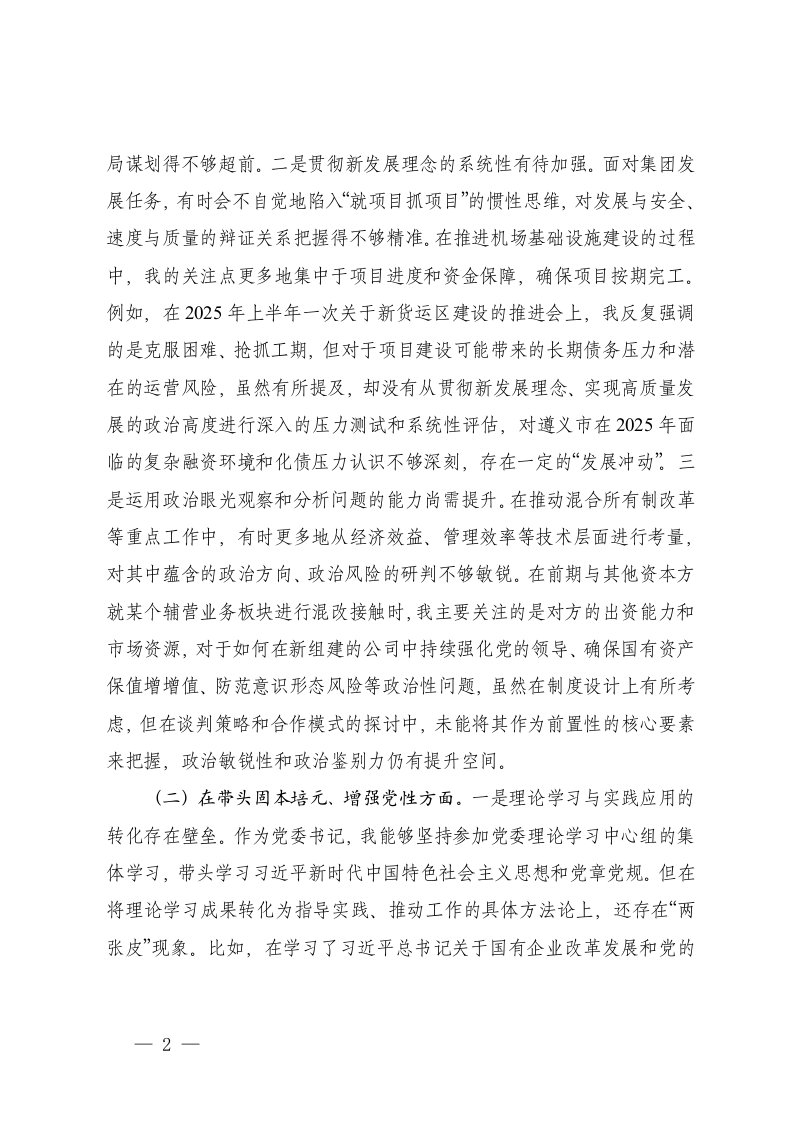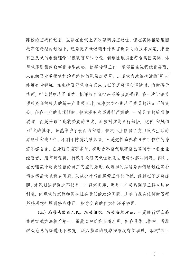 公司党委书记2025年民主生活会个人对照检查材料在带头强化政治忠诚提高政治能力方面在带头固本培元增强党性方面在带头敬畏人民敬畏组织敬畏法纪方面在带头干事创业担当作为方面在带头坚决扛起管