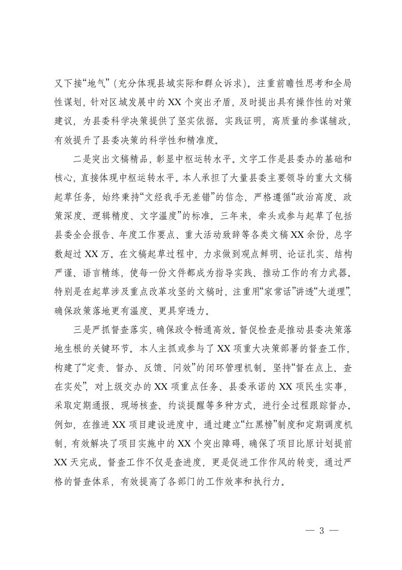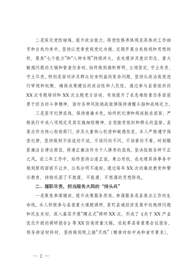 标题:3篇县委办副主任三年思想工作小结2023年2025年
