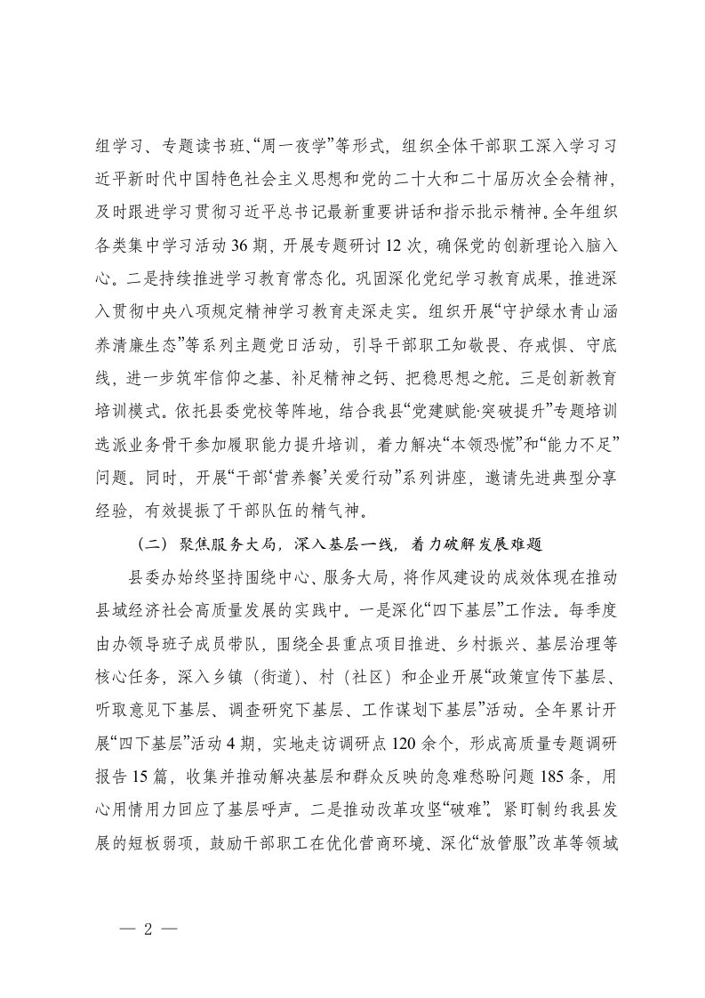 标题:2篇范文县委办公室2025年干部作风建设提升年活动工作总结