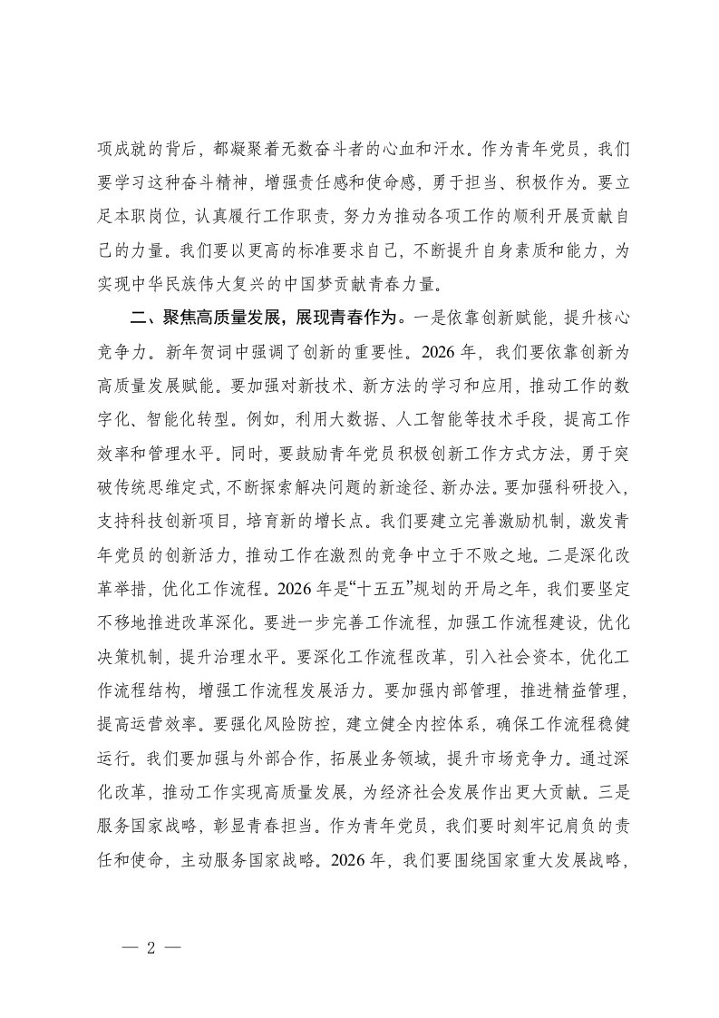 标题:5篇青年党员国企党委书记学习2026年新年贺词学习发言材料