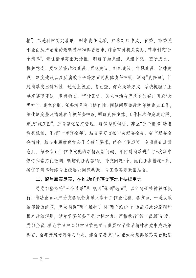 标题:2篇局党组关于2025年落实全面从严治党三个清单情况的报告