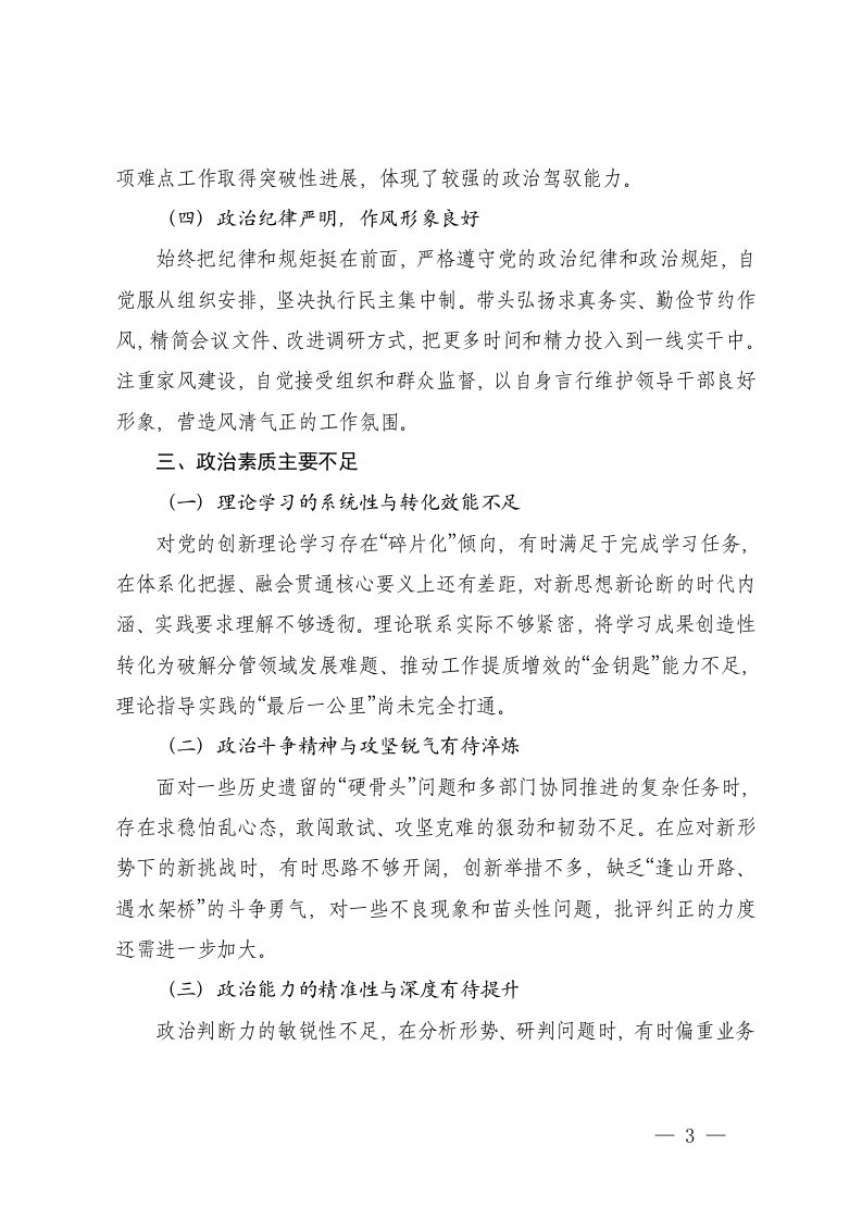 标题:2篇2025年度领导干部政治素质自我评价基本特征和主要不足