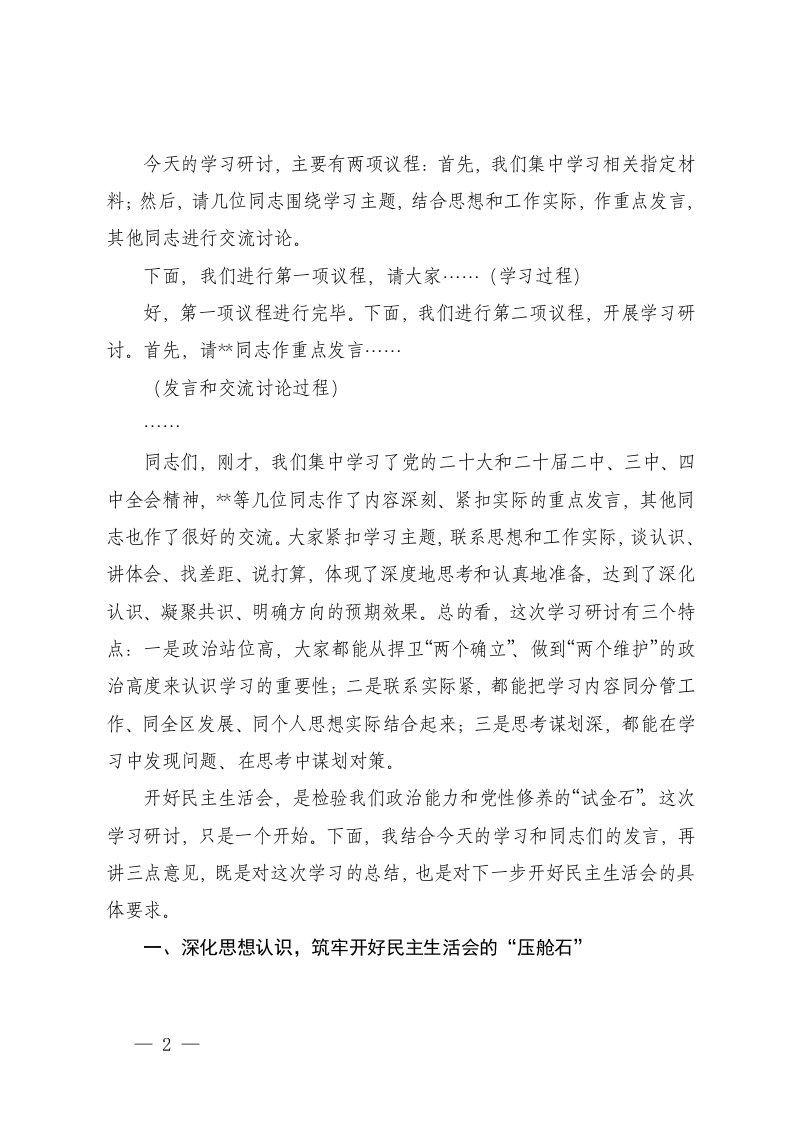 民主生活会,主持词,总结,讲话,理论学习,理论学习中心组,生活,学习2篇在理论学习中心组集体学习暨2025年度民主生活会会前学习研讨会上的主持词及总结讲话民主生活会,主持词,总结,讲话,理论学习,理论学习中心组,生活,学习2篇在理论学习中心组集体学习暨2025年度民主生活会会前学习研讨会上的主持词及总结讲话